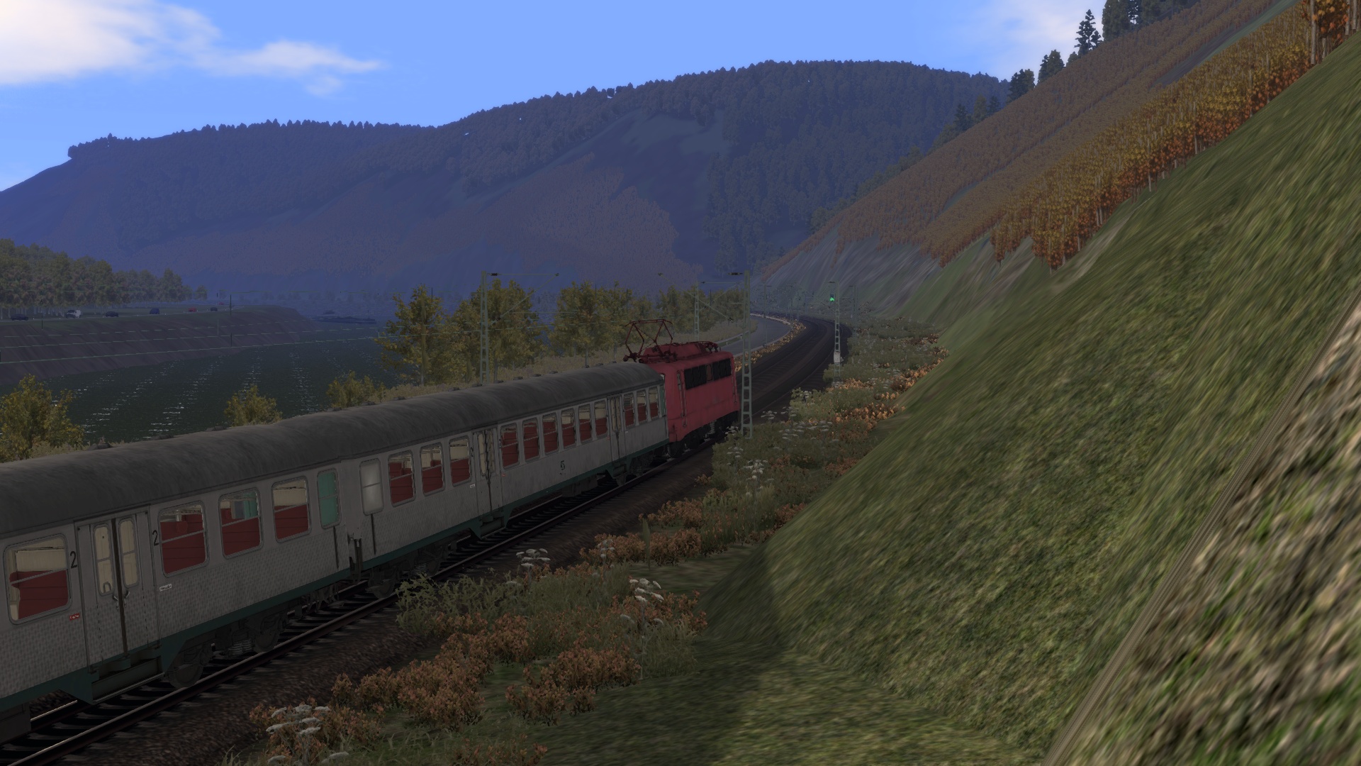 Es ist Spätsommer im Moseltal. An diesem wunderschönen Herbstabend 1990 hast du Dienst auf der KBS 690 und bringst den N7464 von Koblenz Hbf nach Bullay. Da der Fahrplan durch jeglichen Halt auf der Strecke ziemlich straff ist, musst du deine orientrote BR 140 an ihre Grenzen bringen. Kannst du eine mögliche Verspätung vermeiden?