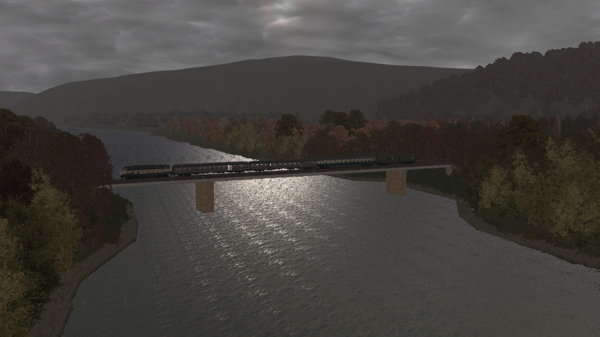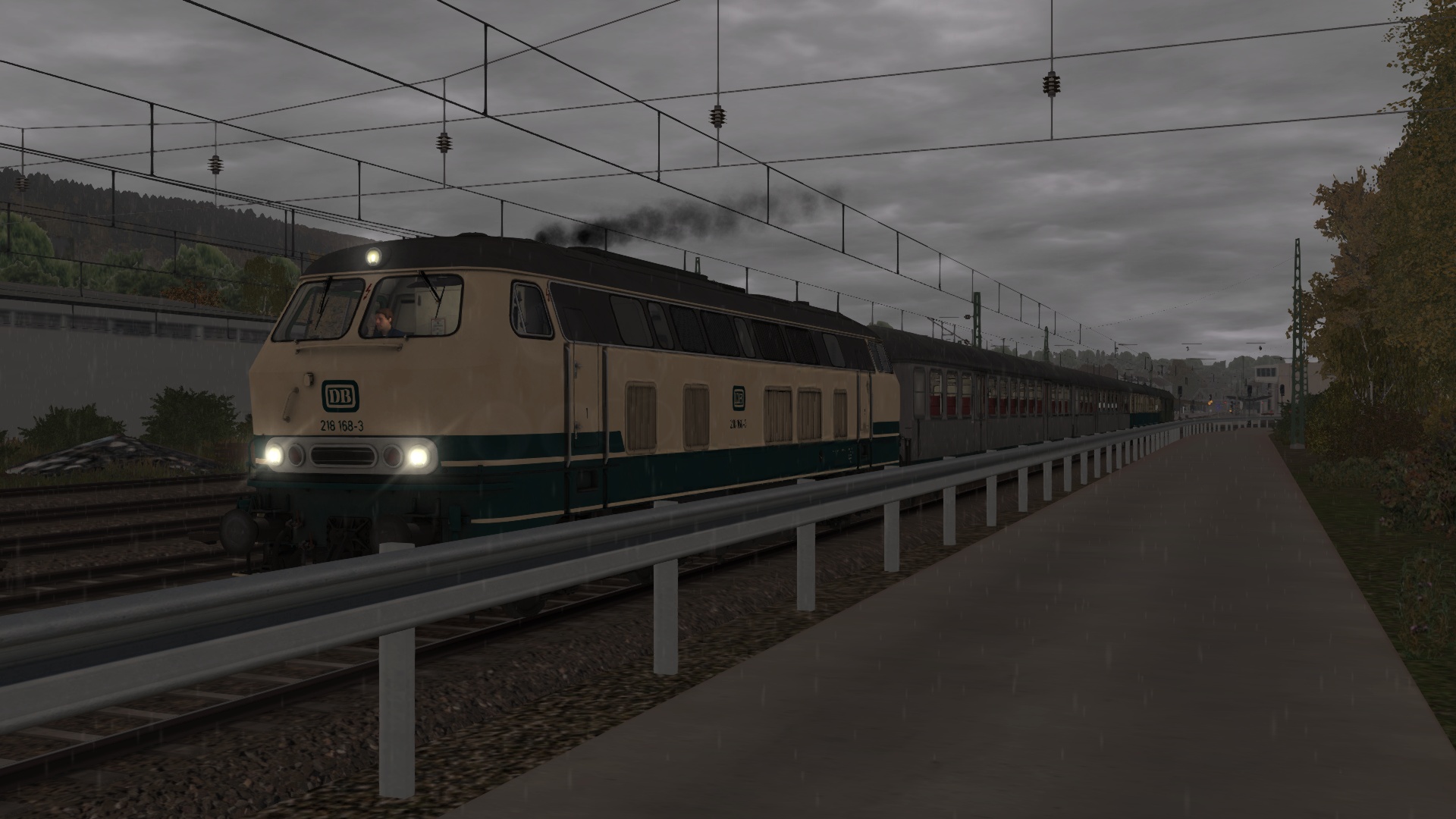 Eigentlich passt an diesem Herbstmorgen Ende der 80er-Jahre alles: eine schöne Strecke, eine schöne Zuggarnitur, nur das Wetter spielt nicht mit – „es regnet heute auch nur einmal“ denkst du dir, als du deine ozeanblau-beige 218er erklimmst.