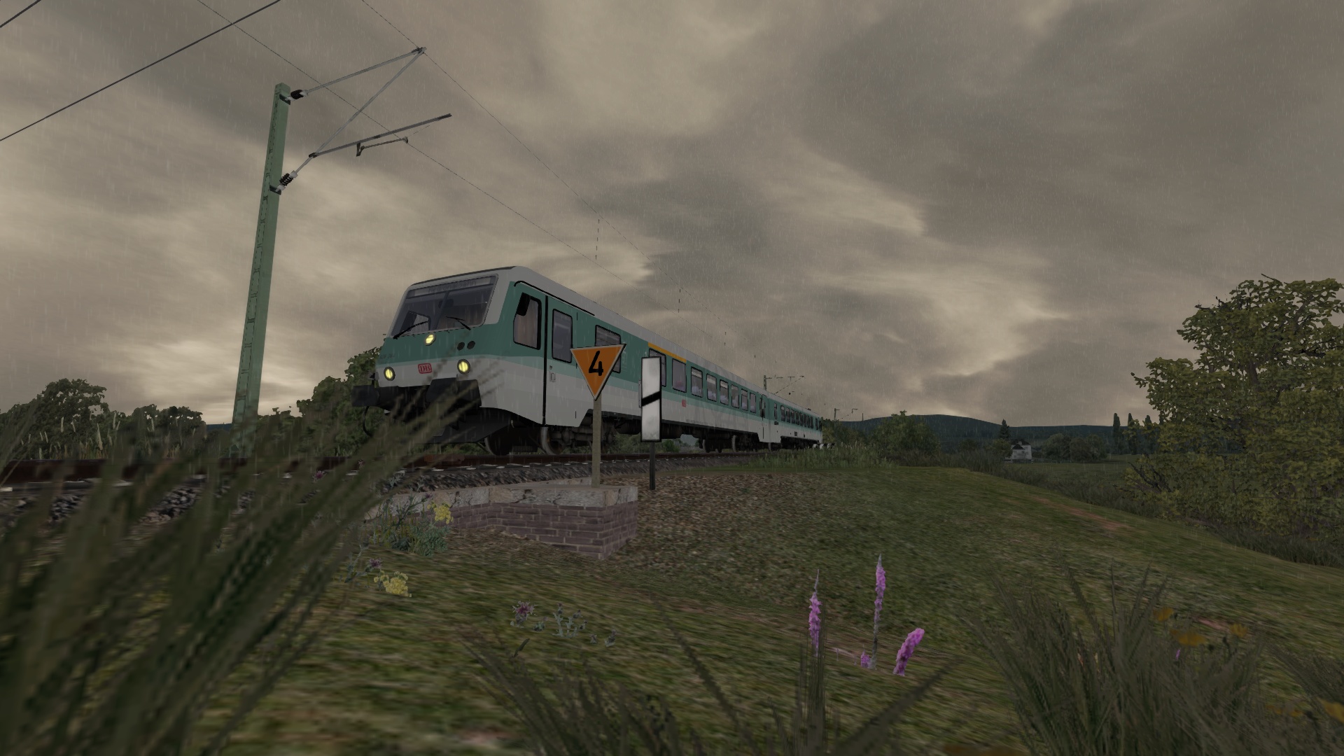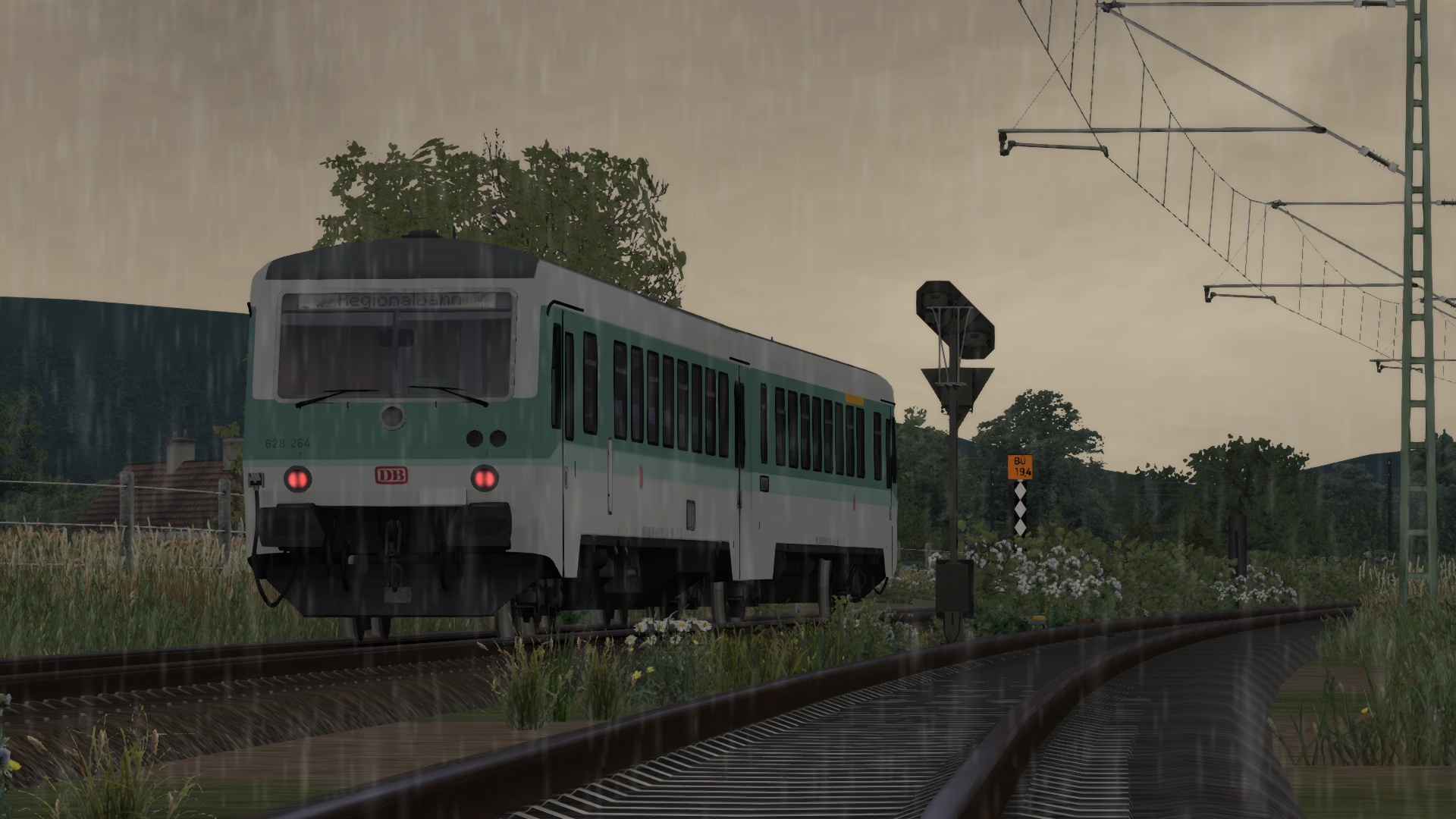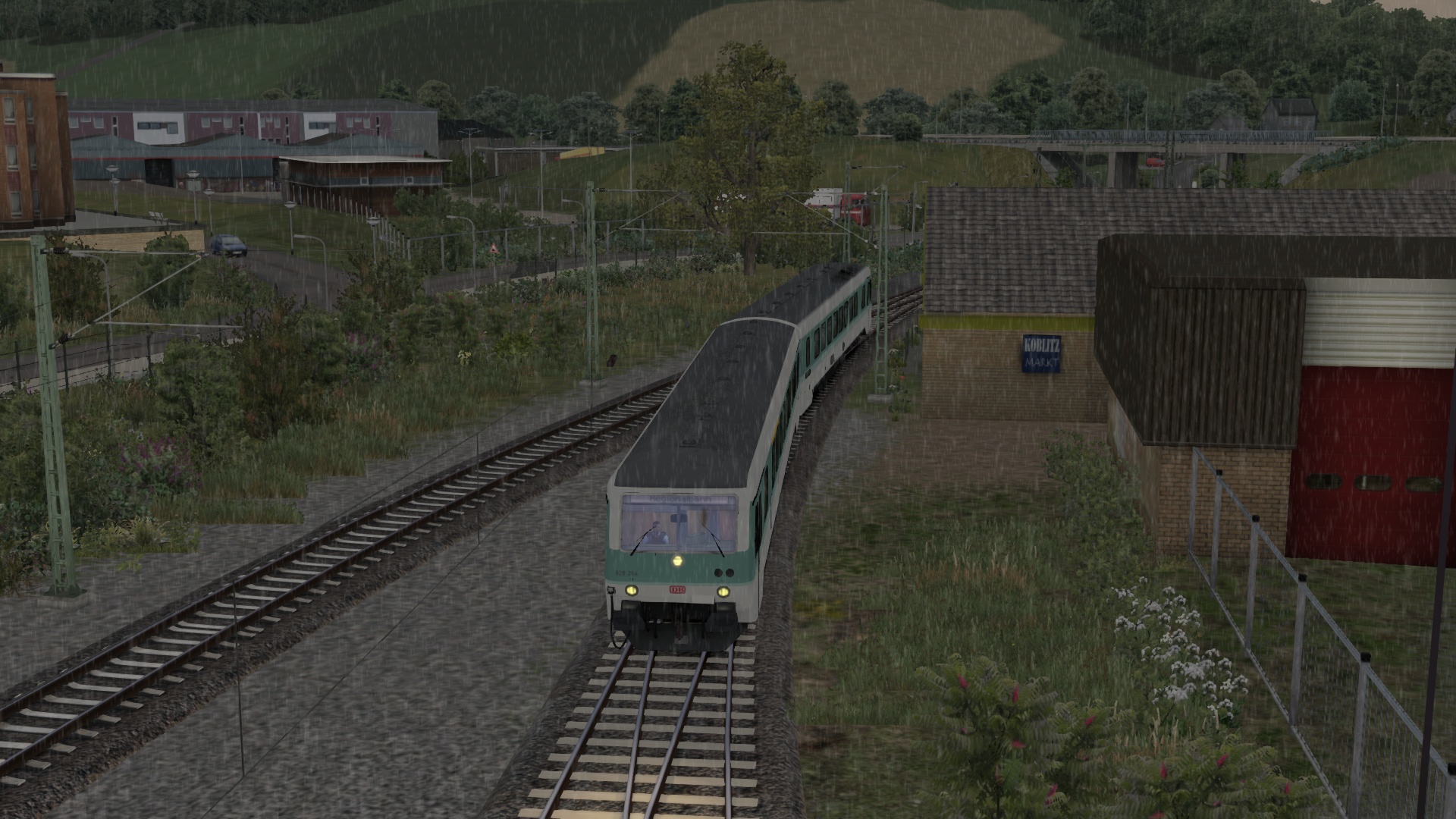 An diesem verregneten Sommerabend bringst du den letzten Nahverkehrszug von Köblitz Hbf über das Rinkental nach Köbler Wald.