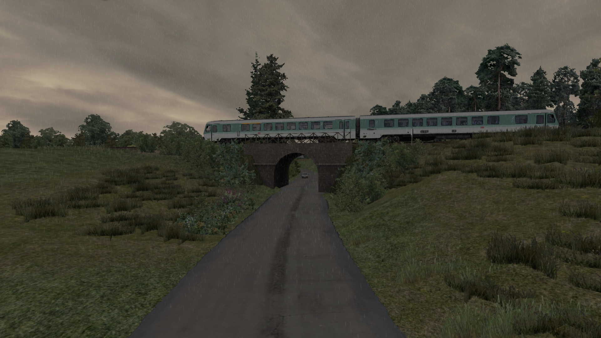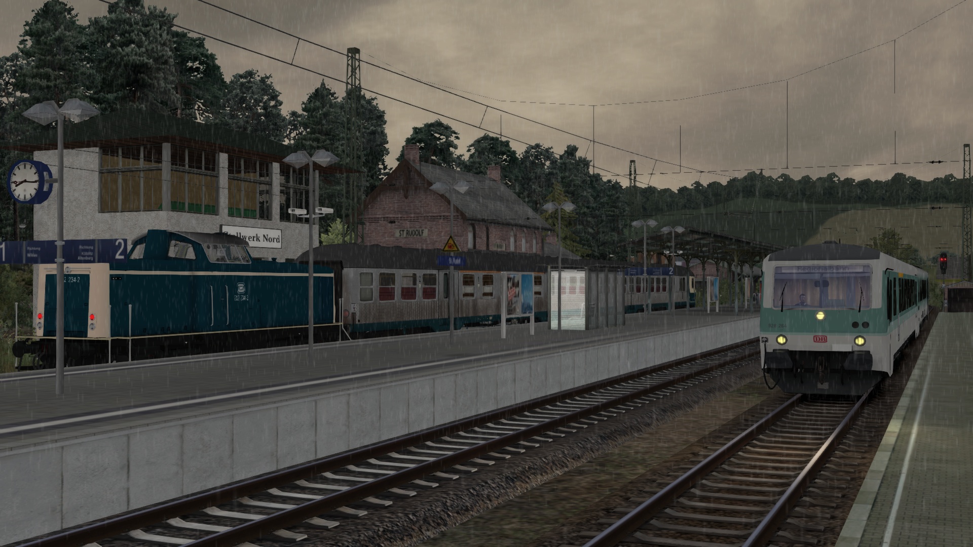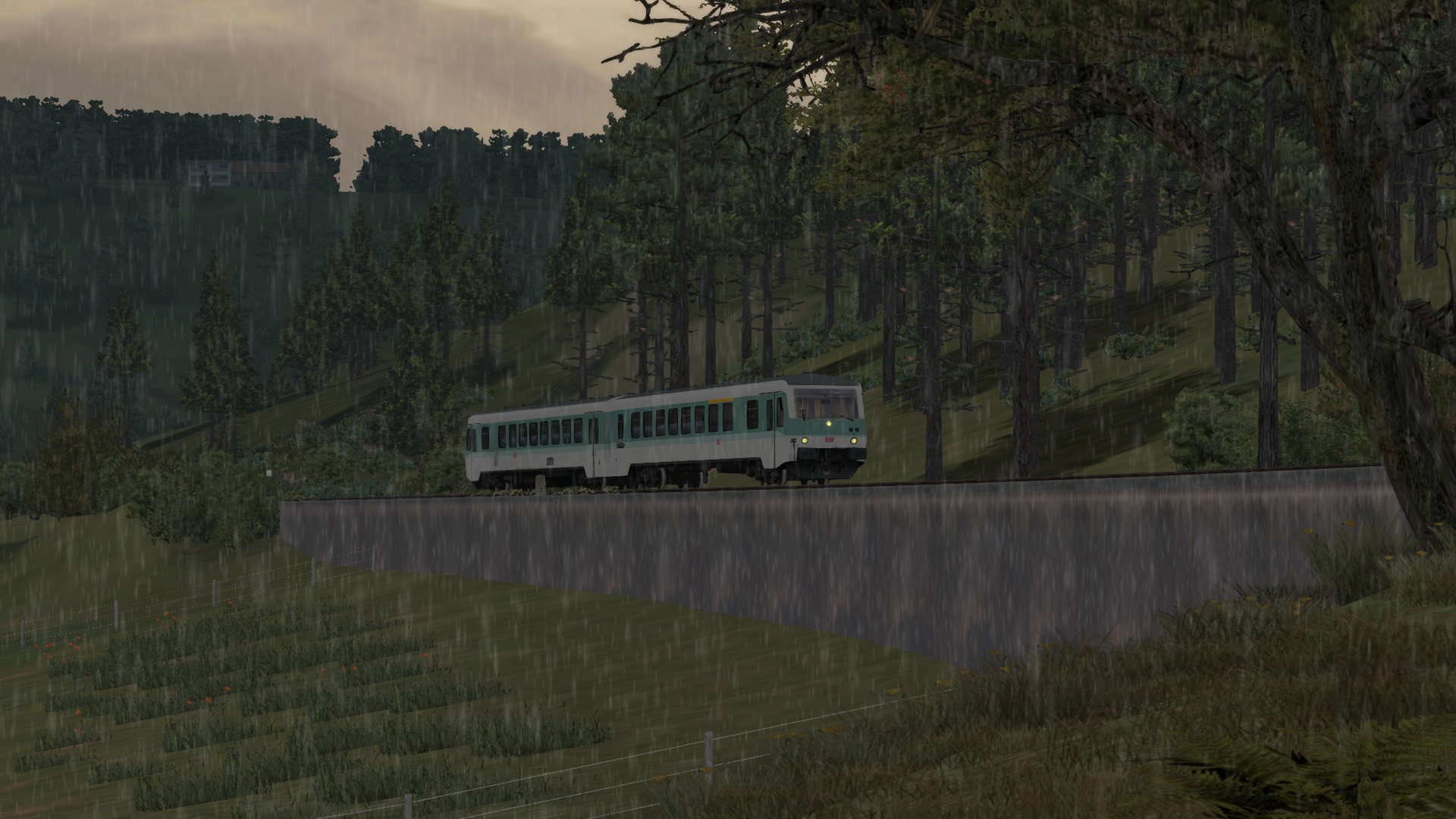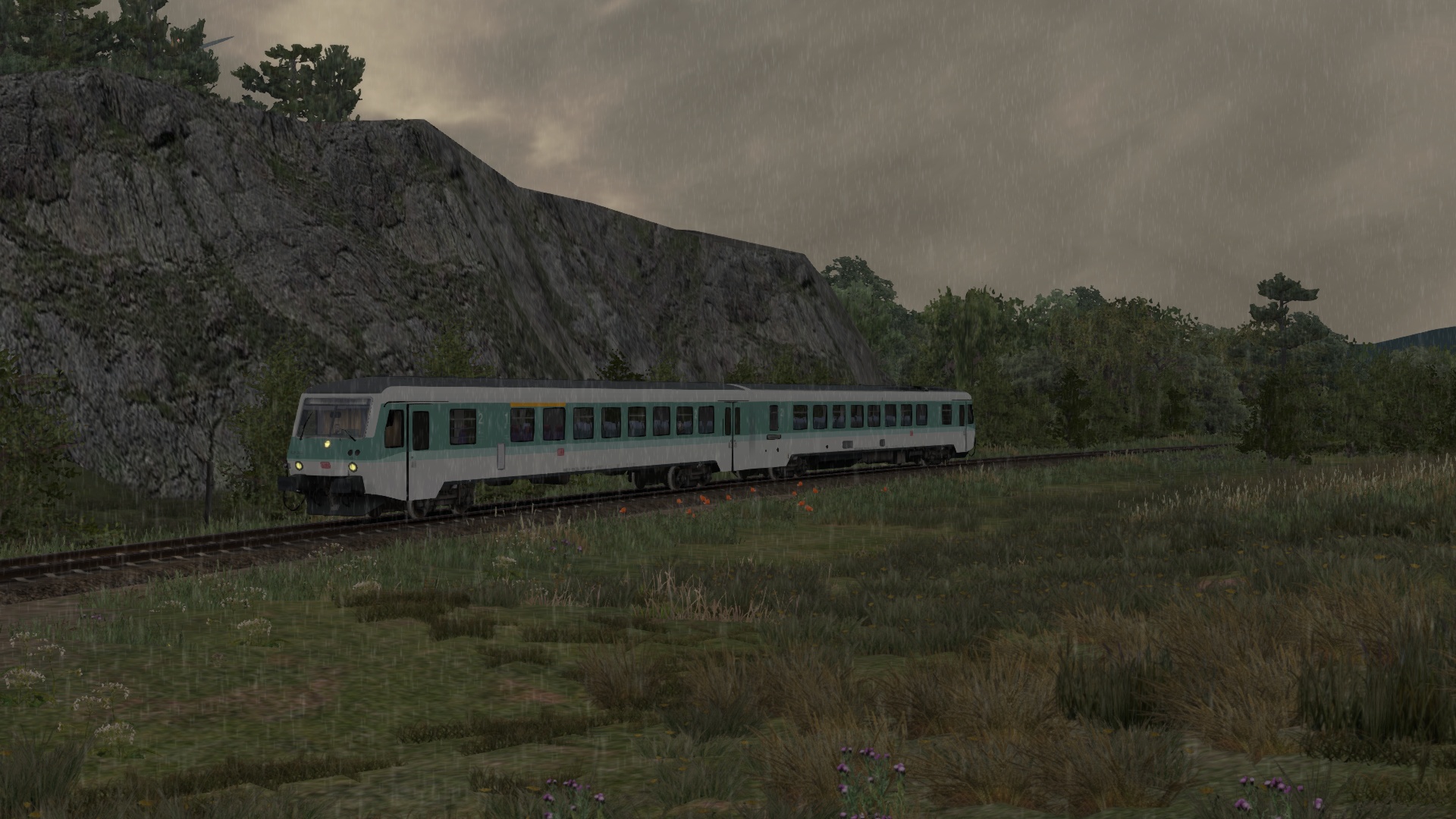 An diesem verregneten Sommerabend bringst du den letzten Nahverkehrszug von Köblitz Hbf über das Rinkental nach Köbler Wald.
