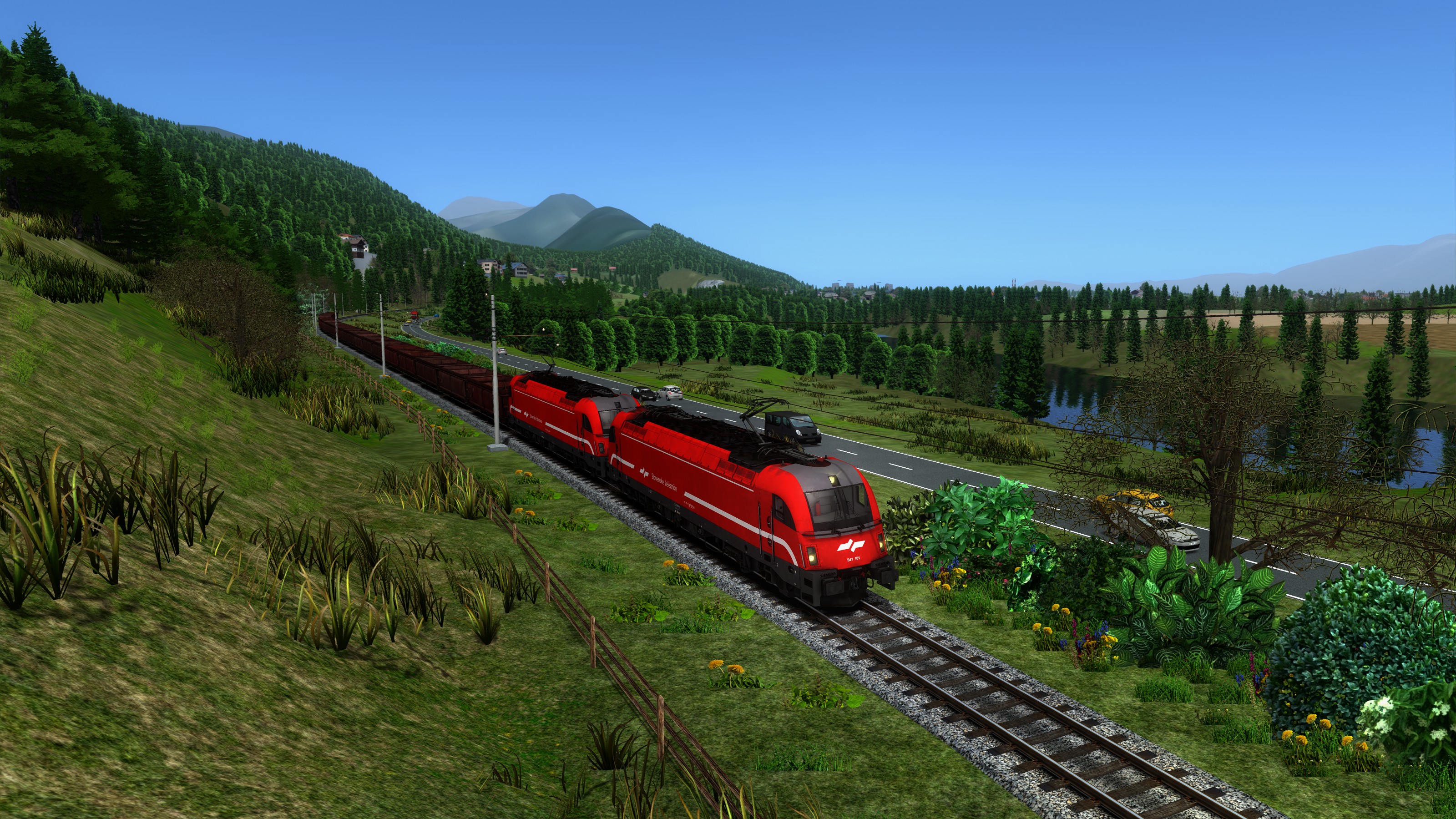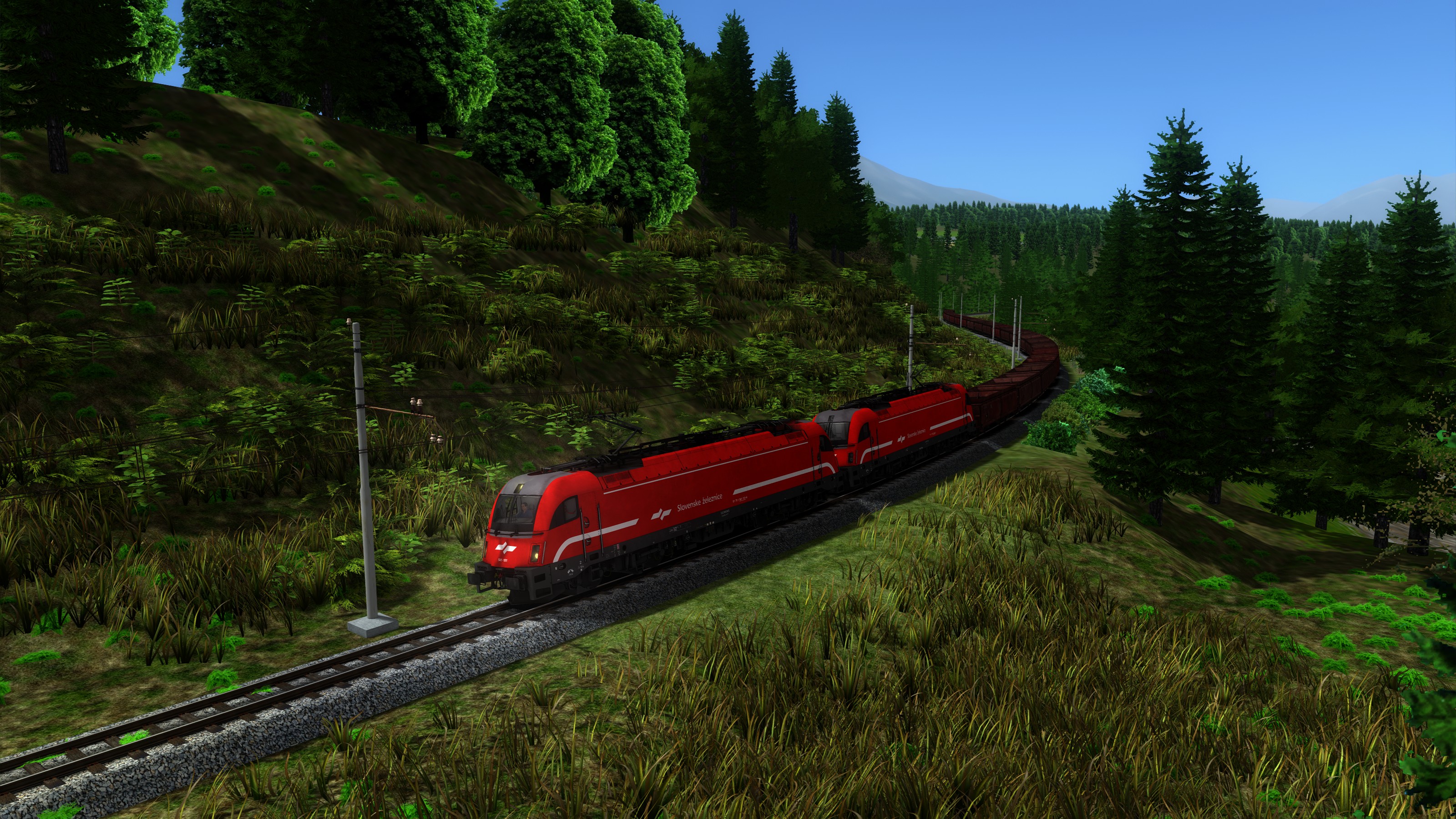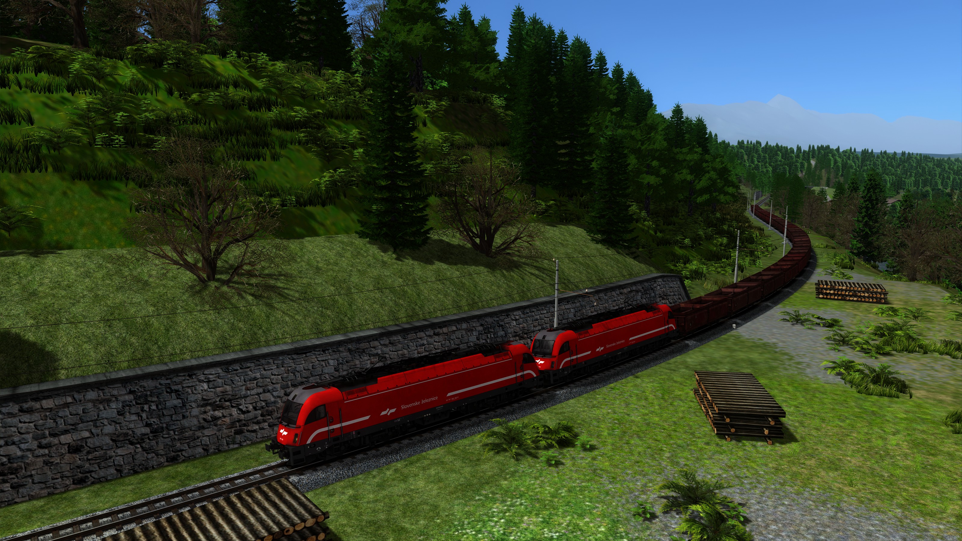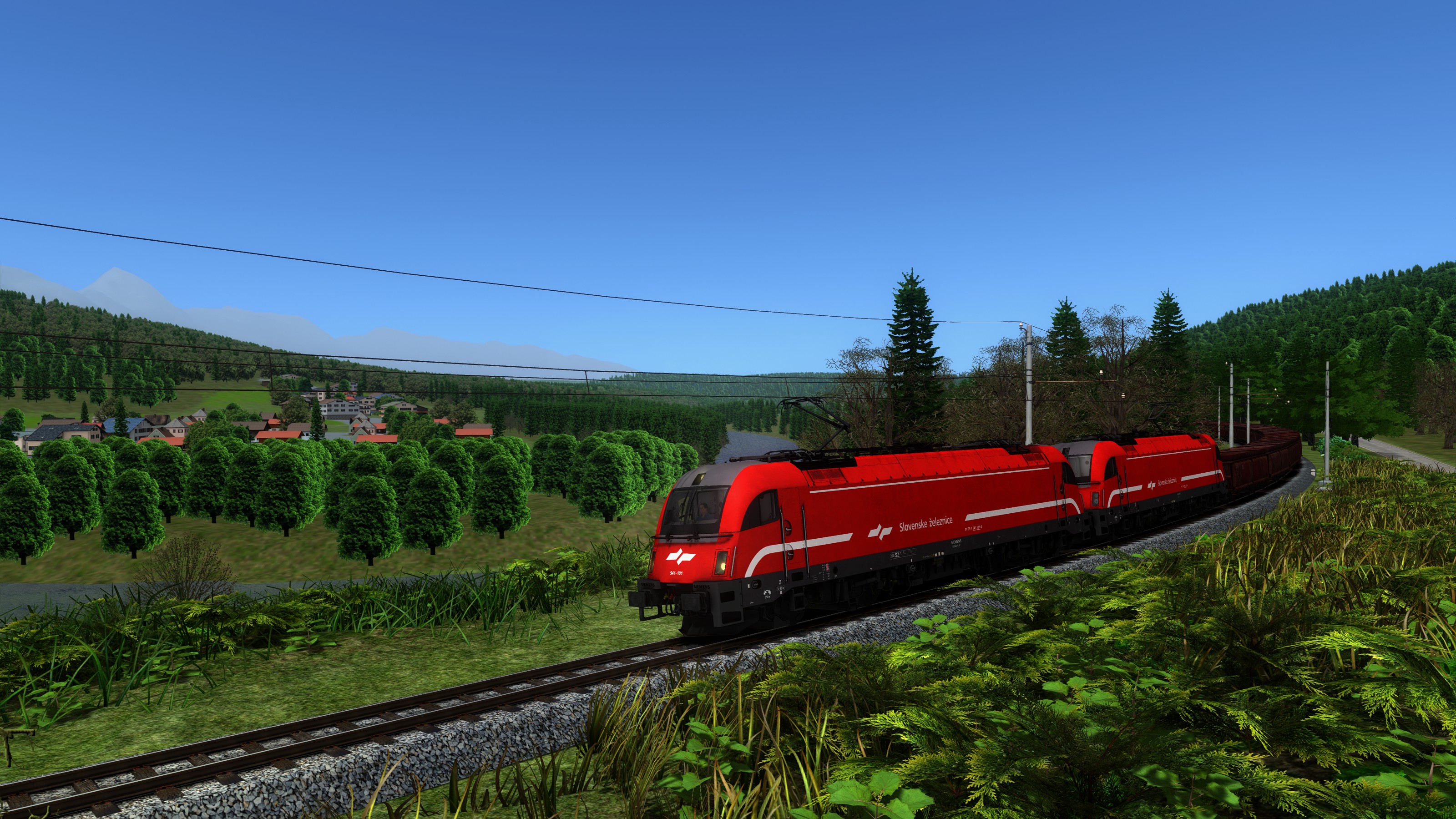 Take loaded ore train from Ljubljana to Jesenice, using two Taurus locomotives. Pay attention to braking in advance, this train is slow to stop.