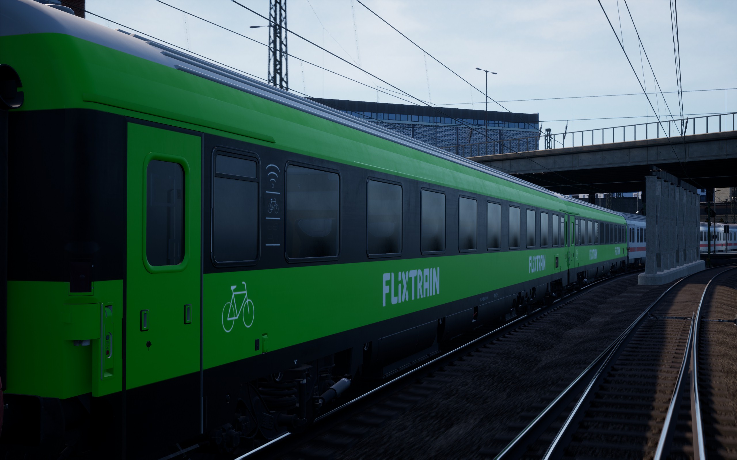hier ist ein Repaint der Intercity-Wagen aus dem BR 101 - DLC in modernisierter Flixtrain-Lackierung. 2020 wurden viele der unter der Marke Flixtrain fahrenden Wagen bei Talbot in Aachen einem Flacelift unterzogen. Natürlich verändert dieses Repaint nicht den Innenraum, sondern nur den Wagenkasten.