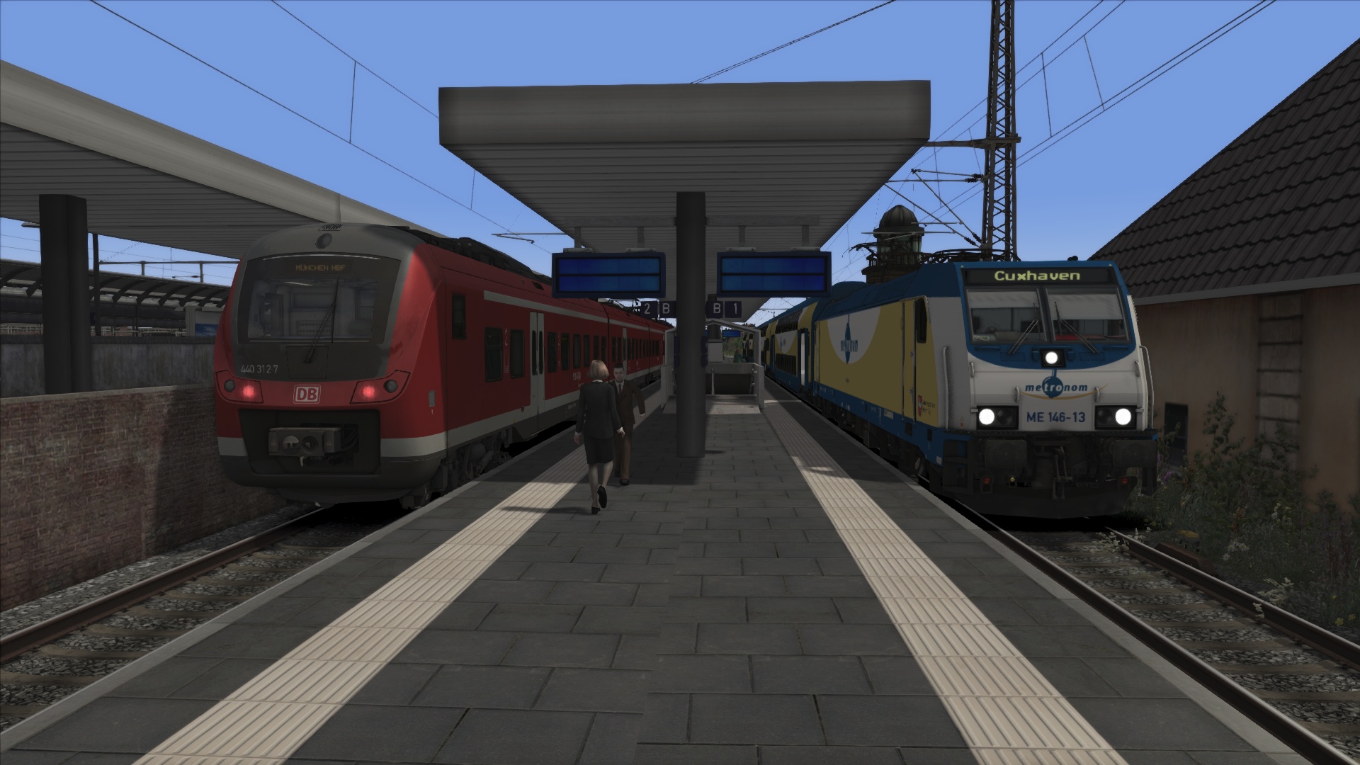 in diesem Szenario bringst du den nach meinem Fahrplankonzept zwischen Nachteburg und Rannstadt verkehrenden RE1 von Nachteburg nach Rannstadt. Der Zug besteht aus einer ME146 mit 4 Dostos. Der Fahrplan sollte keine Probleme bereiten, da dieser Zug nach meinem Konzept quasi der Vorzeige-Zug für die Region ist wurde darauf geachtet dass du eine grüne Welle hast.