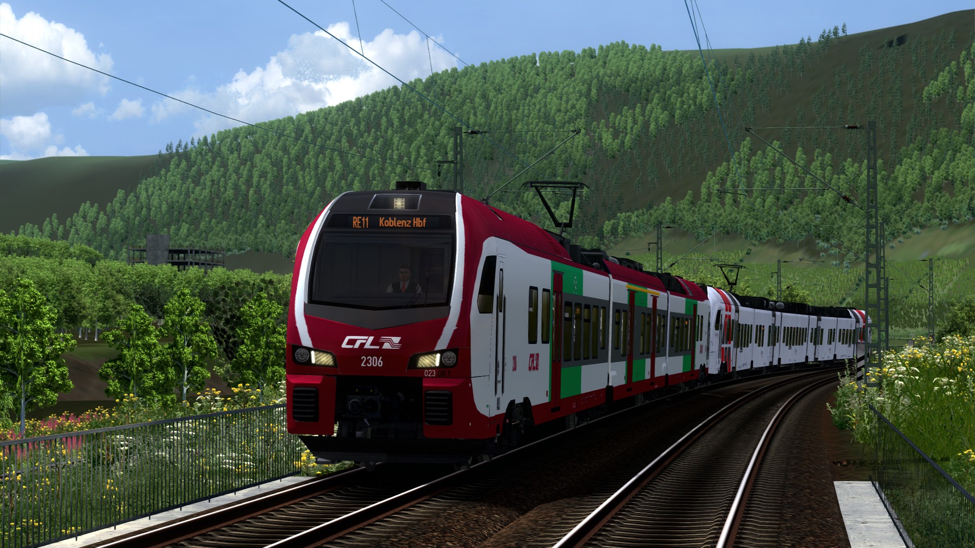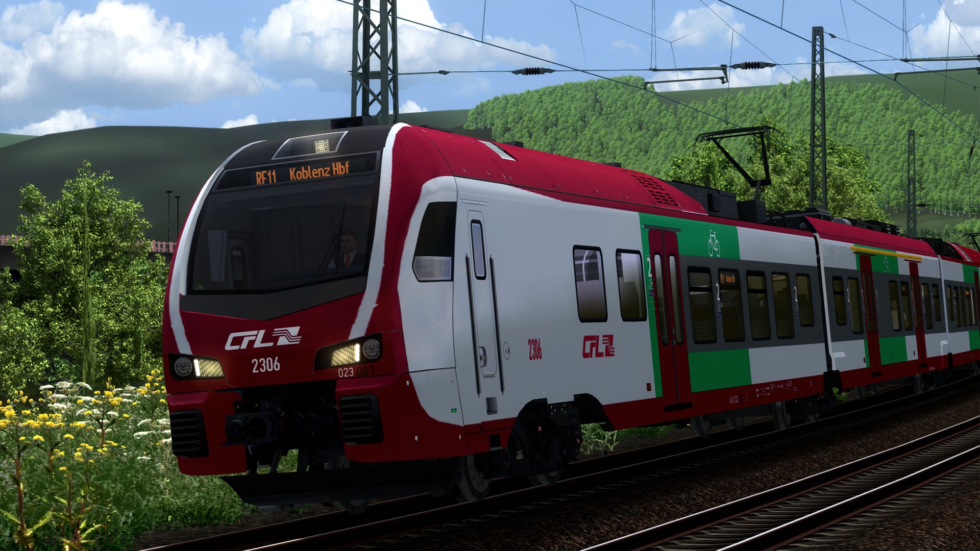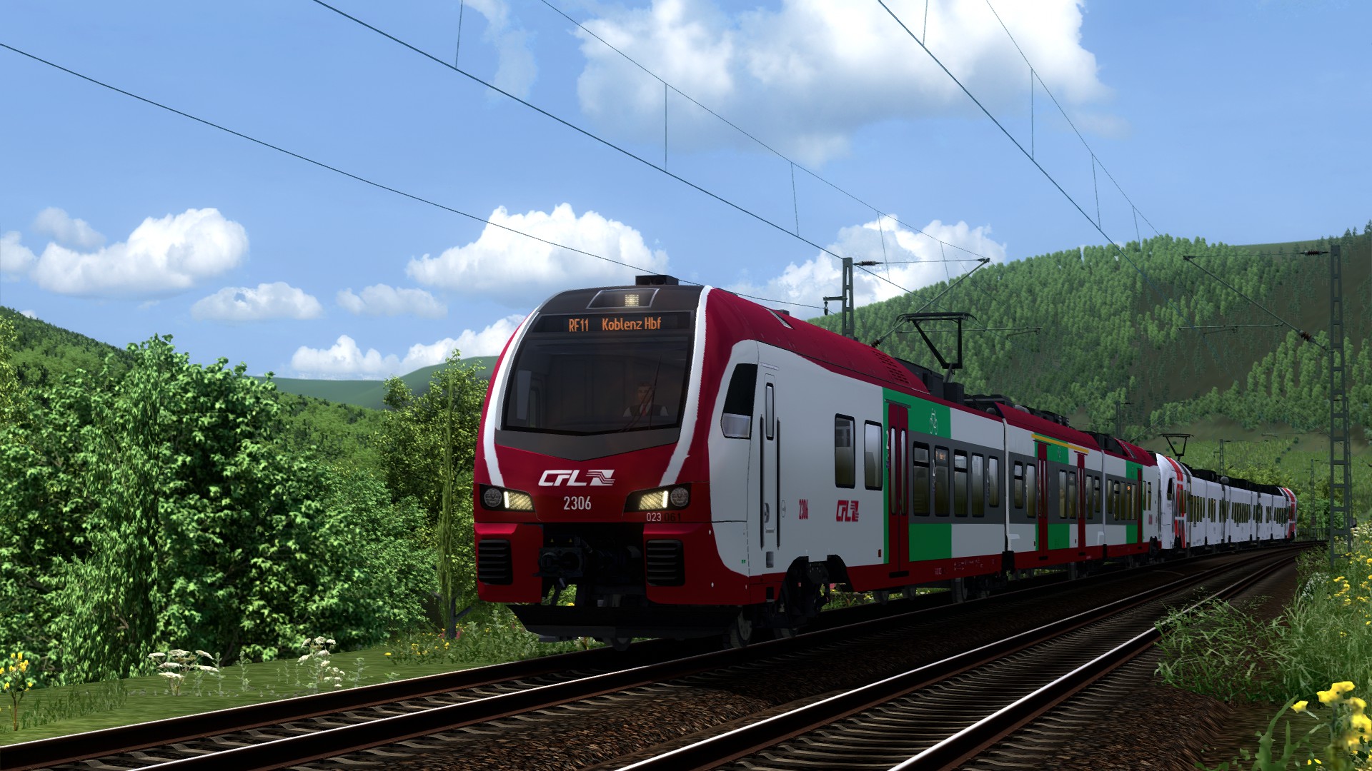 Mit diesem Eintrag stelle ich euch ein Repaint für den FLIRT 3 von ChrisTrains vor. Darstellen soll es ein Fahrzeug der CFL (In der Realität Stadler KISS), die auch zusammen mit dem SÜWEX auf der Moselstrecke in Doppeltraktion verkehren. Diese Züge werden auch als IC zwischen Luxembourg/Koblenz Hbf und Düsseldorf eingesetzt, weshalb man diesen Zug auch auf der Strecke Köln - Koblenz fahren kann. Außer dem Repaint wurde noch der Führerstand geändert. Dieser lehnt sich an den Stadler KISS der CFL an.