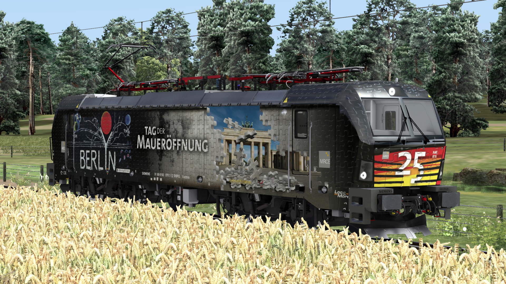 In diesem Repaint ist die 193 876 „25 Jahre Mauerfall“ der TX Logistik enthalten. Diese lässt sich sowohl mit der RSSLO ‚Standart‘ als auch mit der ‚Advanced‘ Version des Vectron fahren.