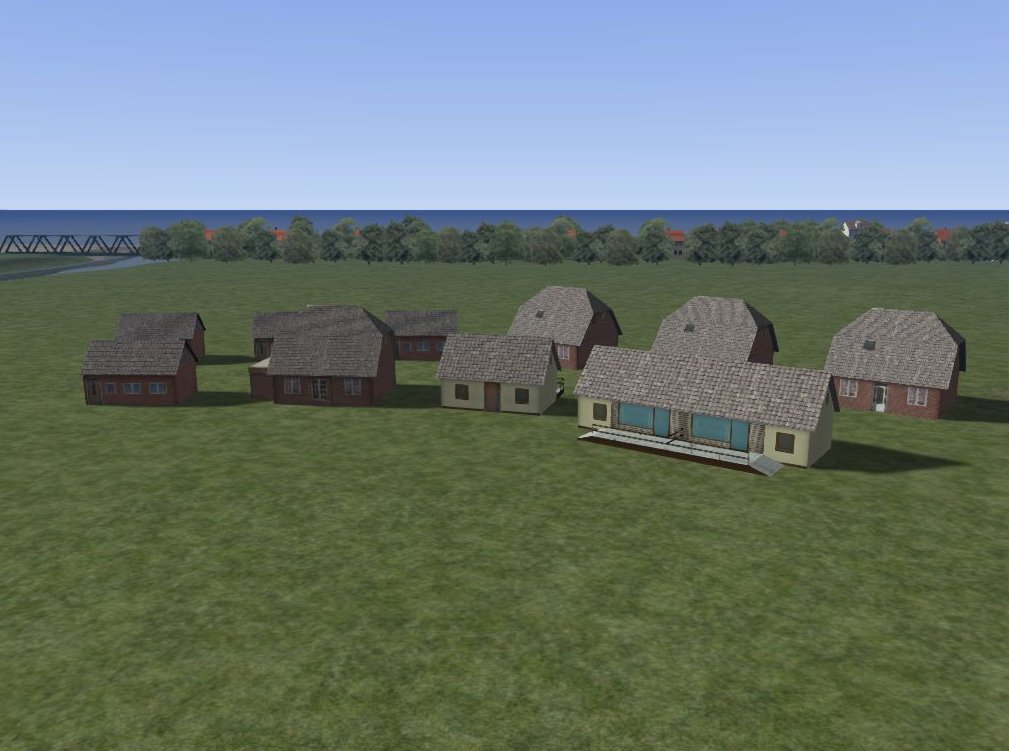 Set von 6 kleinen europäischen Häusern (3 Einzelhäuser, 2 Häusergruppen und ein Doppelhaus)