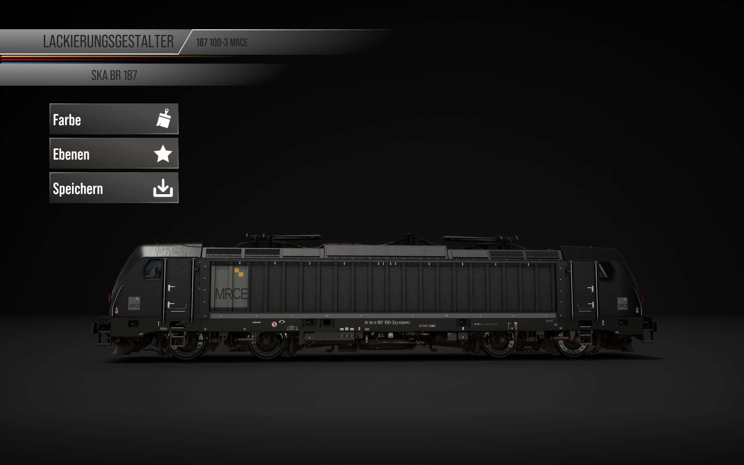 ich habe für die BR 187 von SHG ein Repaint erstellt, hier im Gewand von MRCE. Der Detailgrad ist sehr hoch mit über 450 Layern. Bitte habt sowohl die Logo Mod als auch das Mastery Overlay 2.9 oder neuer installiert, sonst wird das Repaint nicht laden.
