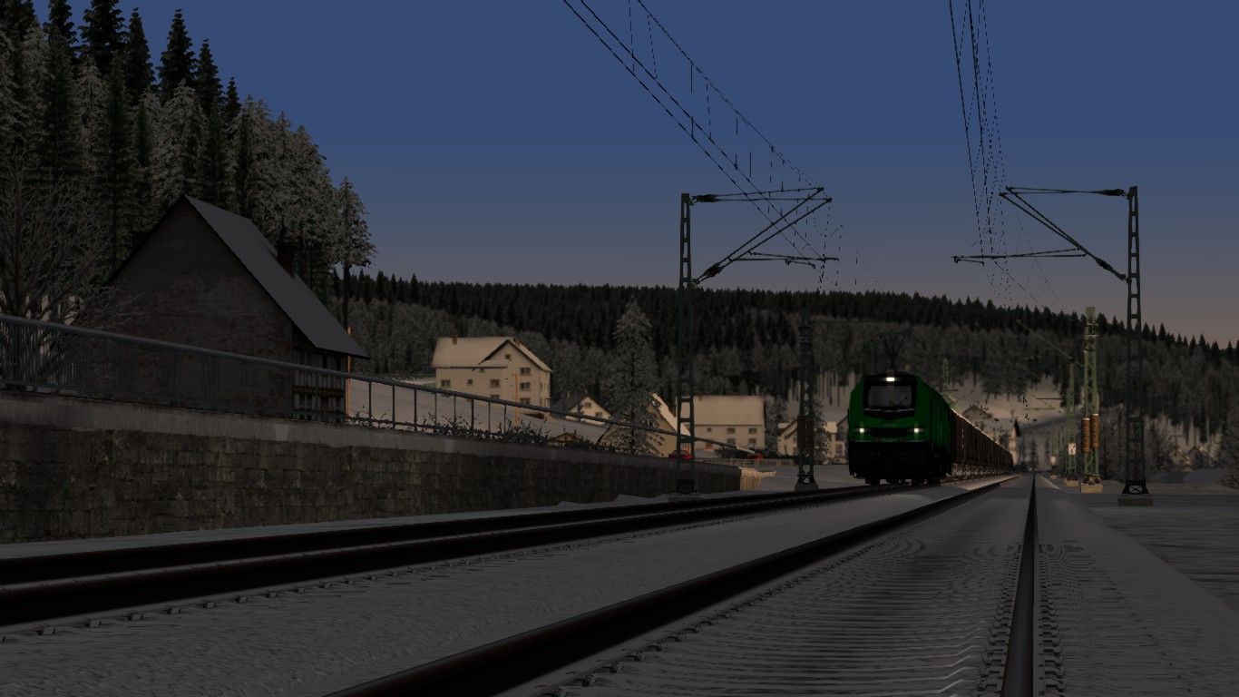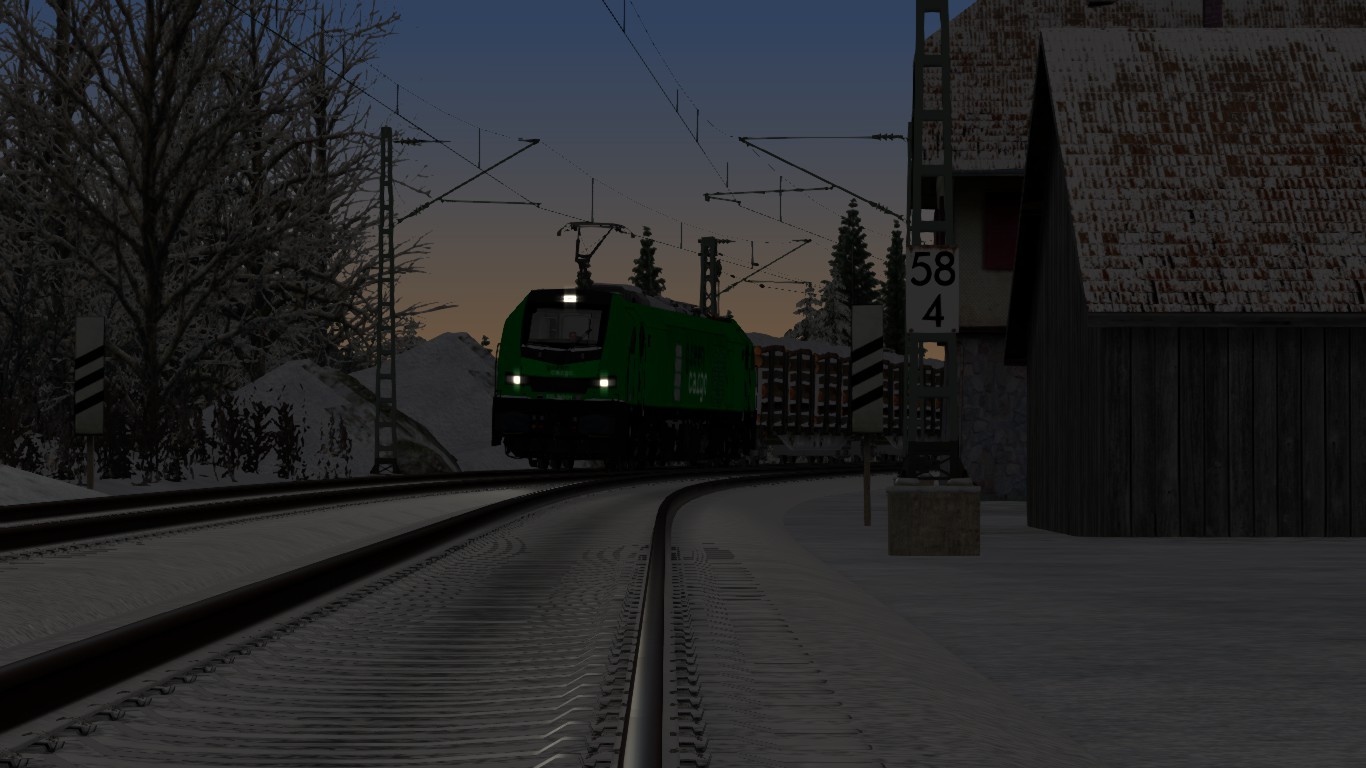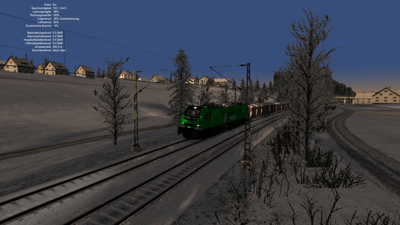 Du fährst an einem schönen Wintertag einen aus Rottweil kommenden Holzzug von Villingen nach Hausach wo Du einen kurzen Betriebshalt einlegst.