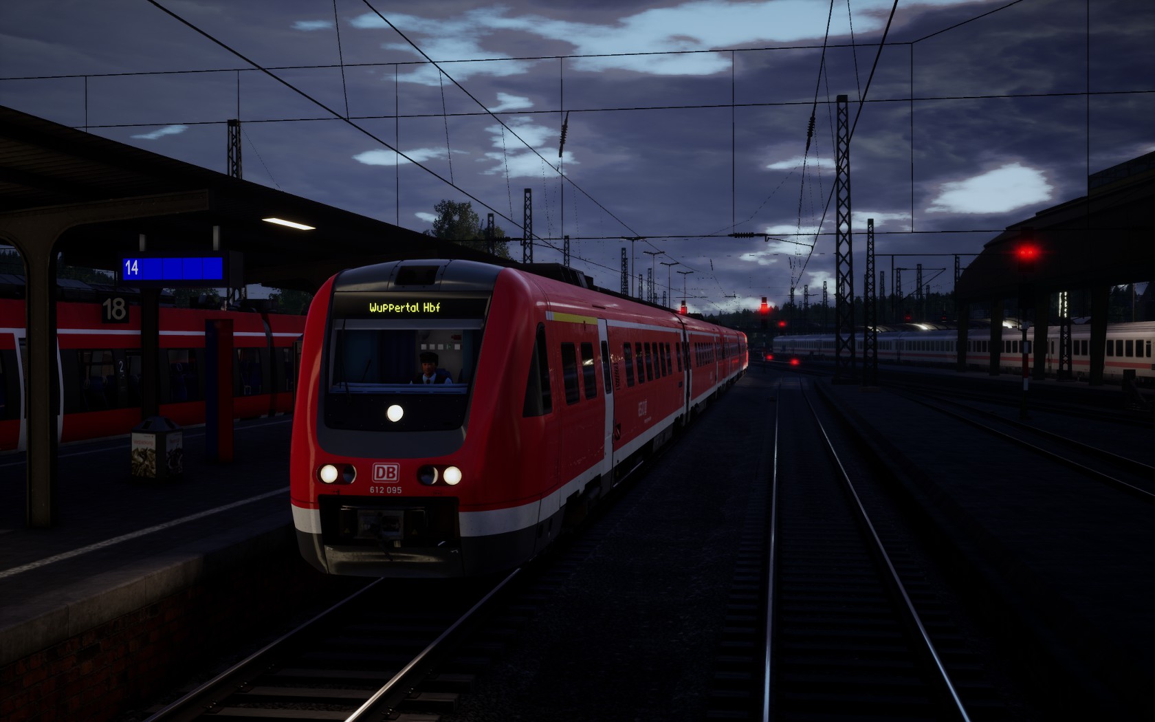 Aufgrund der Pleite von Abellio hat die DB den Betrieb auf der S7 mit 612ern übernommen. Du übernimmst in Hagen einen Zug aus der Abstellung, den du ohne Halt bis nach Wuppertal Oberbarmen bringst. Dort setzt du als S7 zum Hbf mit Halt an allen Stationen ein, dort angekommen wird ein Kollege dich ablösen und den Zug weiter nach Solingen fahren.