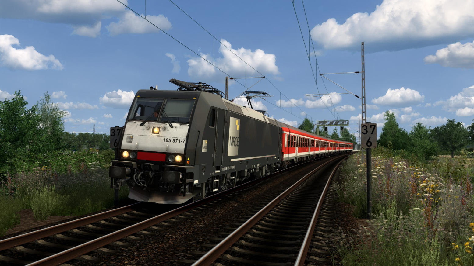 Nach der Neu-Installation kann ich zumindest die 185er normal fahren; der Wittenberger Steuerwagen lässt sich nach dem Führerstandswechsel aber weiterhin nicht wirklich bedienen. Den Fahrschalter muss ich beispielsweise her Maus bedienen.