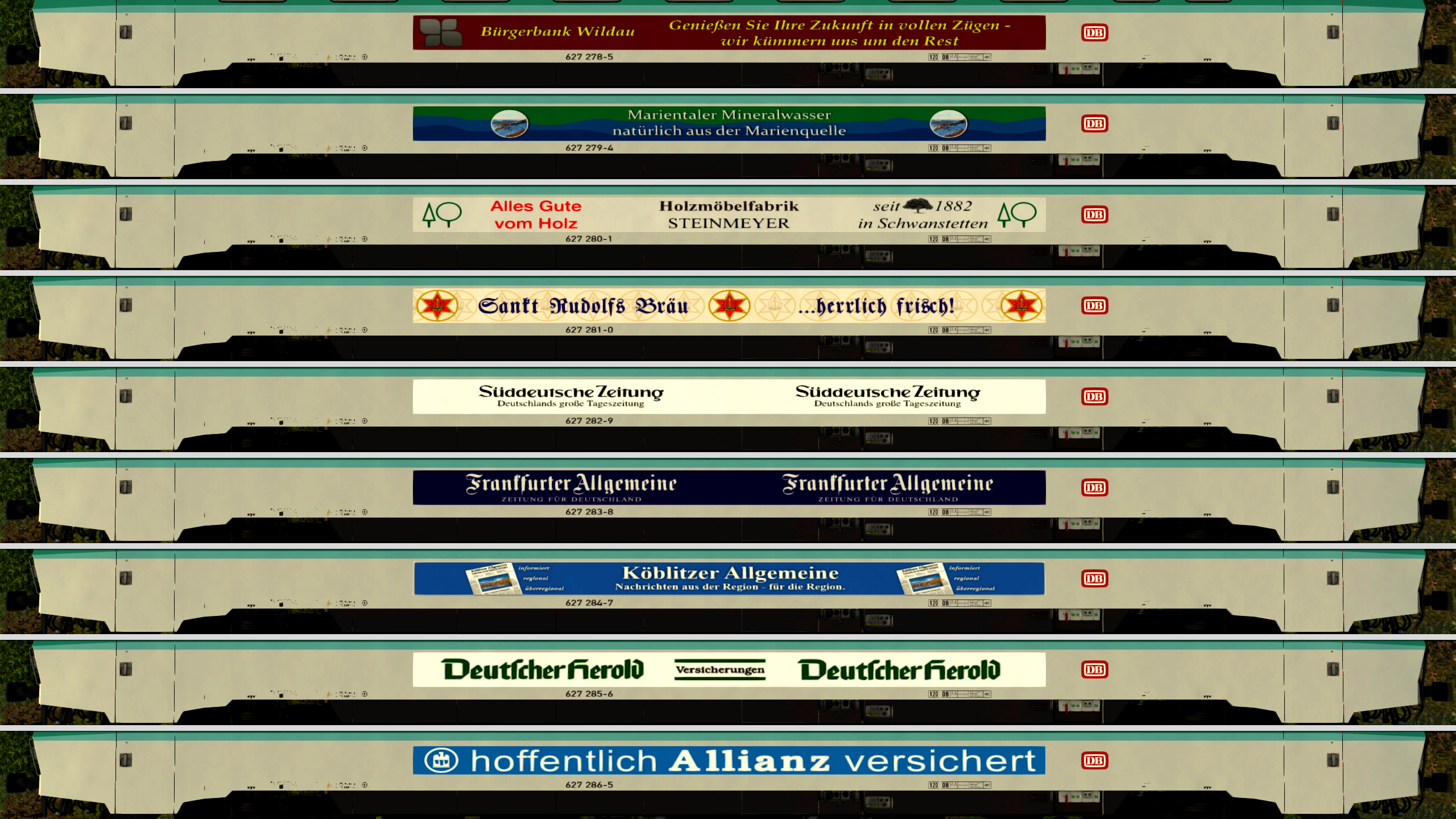 - verschiedene Lackierungsoptionen gesteuert durch die Fahrzeugnummer (DB-Keks, erste Klasse, Werbung)