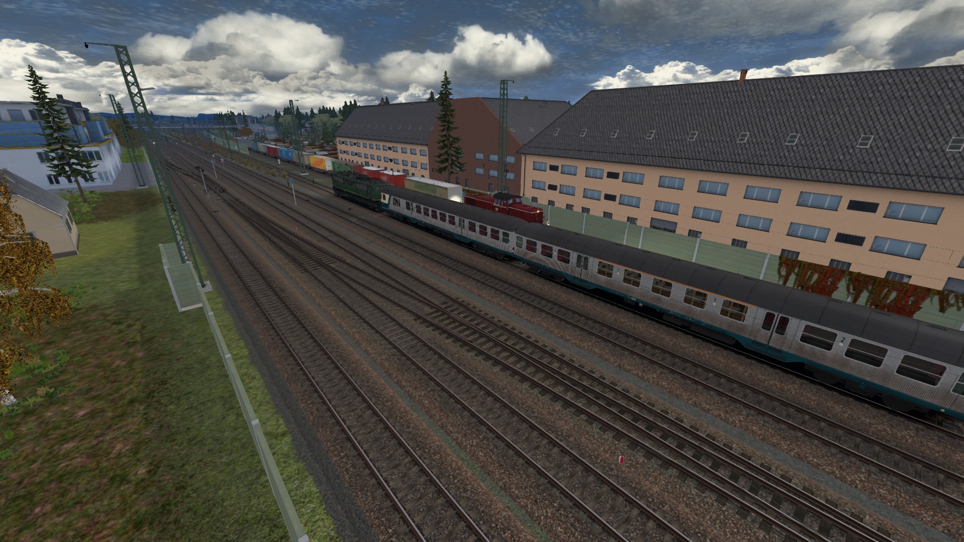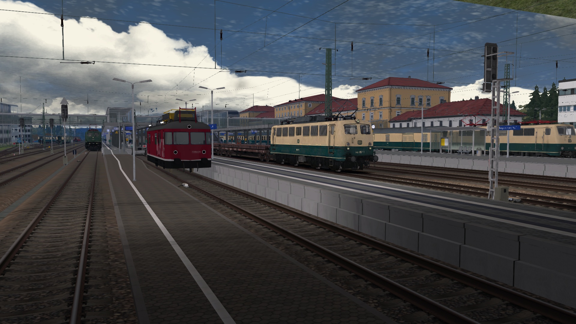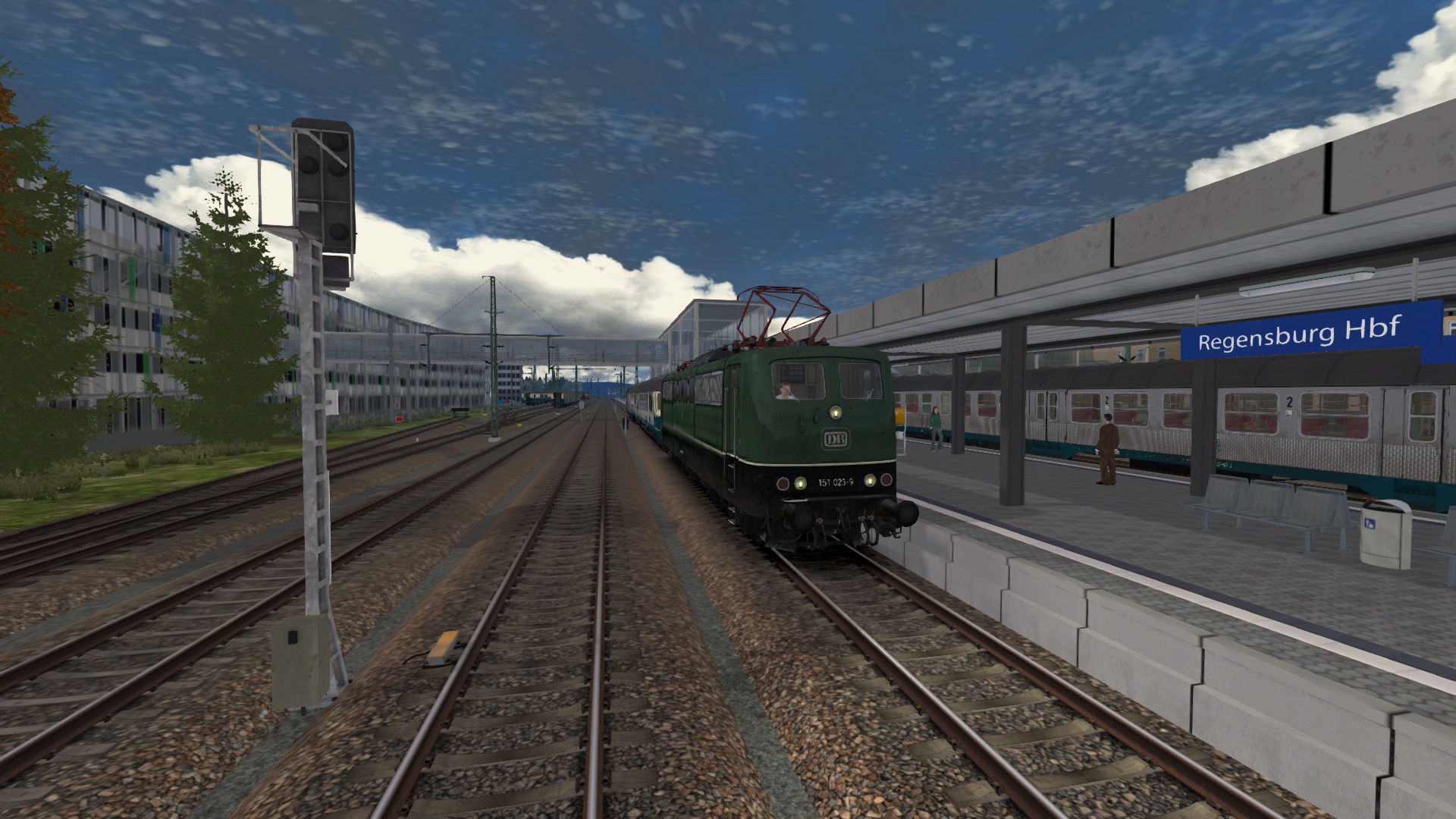 Anfang der 90er-Jahre war es nicht unüblich, Güterzuglokomotiven vor Eilzügen in Regensburg in Richtung Passau anzutreffen – so auch heute!Du bist im Führerstand einer chromoxidgrünen BR151 und bringst mit zwei n-Wagen am Haken den E6425 von Regensburg Hbf nach Plattling.