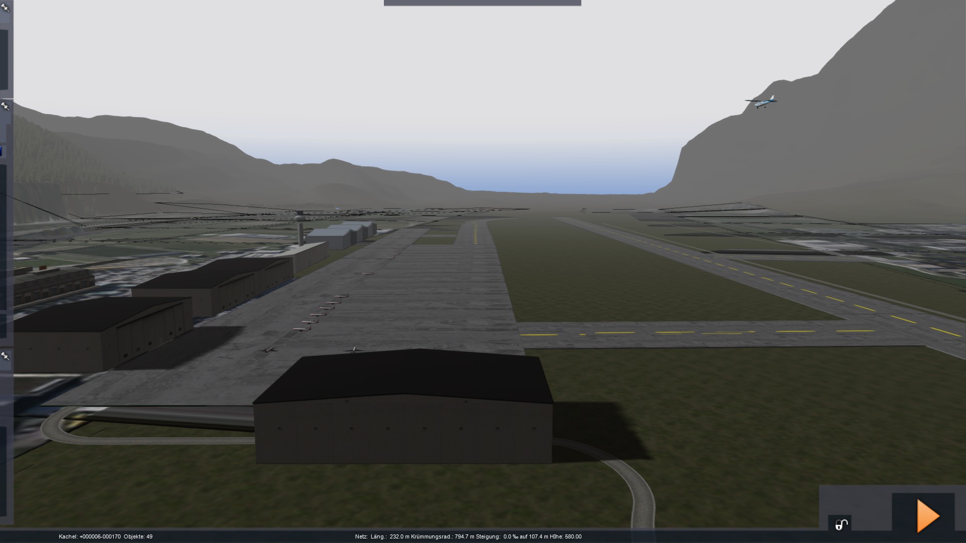 Flughafenbausatz bestehend aus Tower, 3 Hangars sowie Vorfeld- und Landebahnbausatz. Zu finden sind die Teile dann unter den Industrieobjekten. Die landebahn besteht aus einem vorderen und einem hinteren stück und kann mit den Mittelstücken modular erweitert werden.