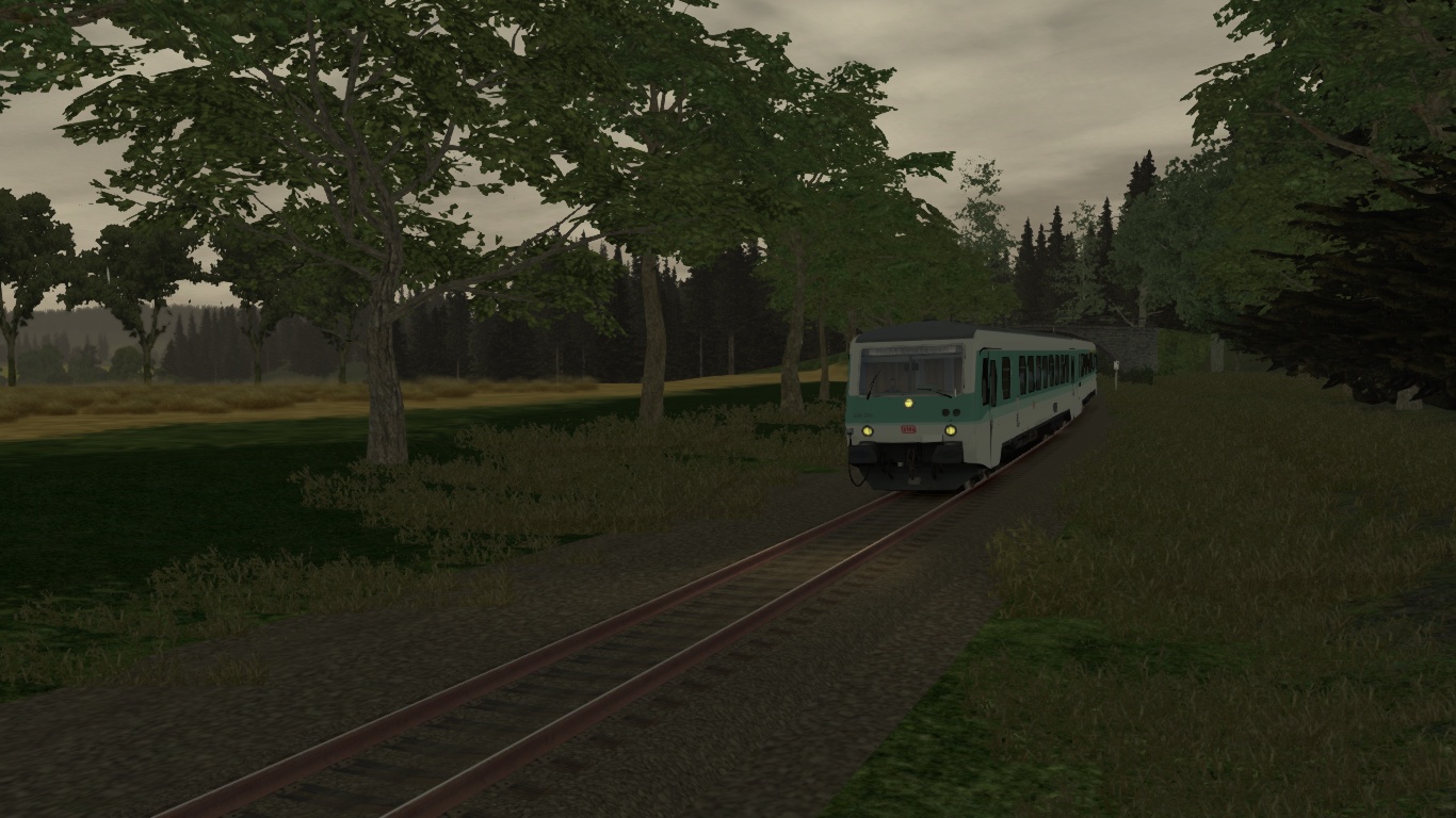Du fährst an einem Sommermorgen mit der guten alten BR628 die erste Regionalbahn von Gefrees nach Neuenmarkt Wirsberg.