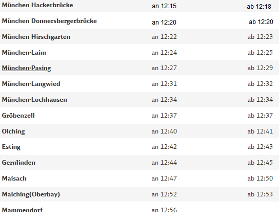 Du fährst heute Mittag die S3 (2 Teilig) zwischen München Hackerbrücke und Mammendorf. Deine Abfahrtzeiten entnimmst du dem Fahrplan. Viel Erfolg!