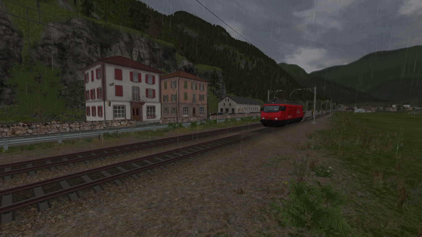 Bringe an einem regnerischen Sommermorgen einen XAS Leerzug über die Südrampe von Belinzona nach Airolo.