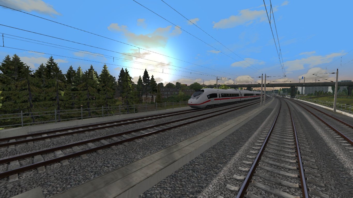 Fahre mit einer BR407 Doppeltraktion von Augustinustal Hbf nach Brennitz Hbf über Flughafen.
