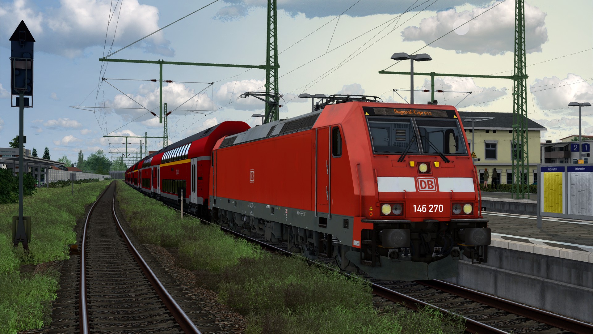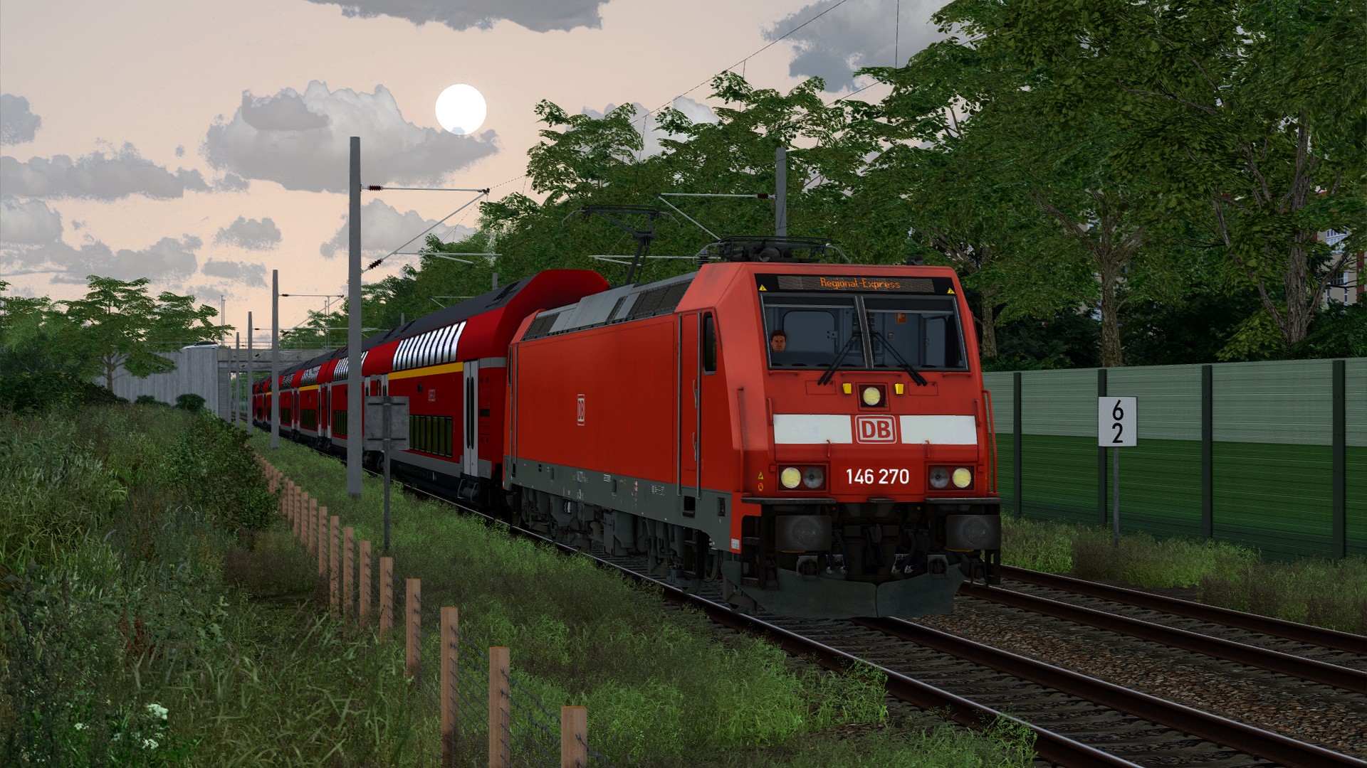 Mache deine 146 erstmal soweit fahrbereit und gebe die Türen frei. Los geht es hier dann um 19.34 Uhr. PS: Der im Szenario verwendete Originale Fahrplan ist äußerst lasch - möchte man lange Standzeiten in den Unterwegshalten vermeiden kann man auch langsamer als die vorgegebene Vmax fahren.