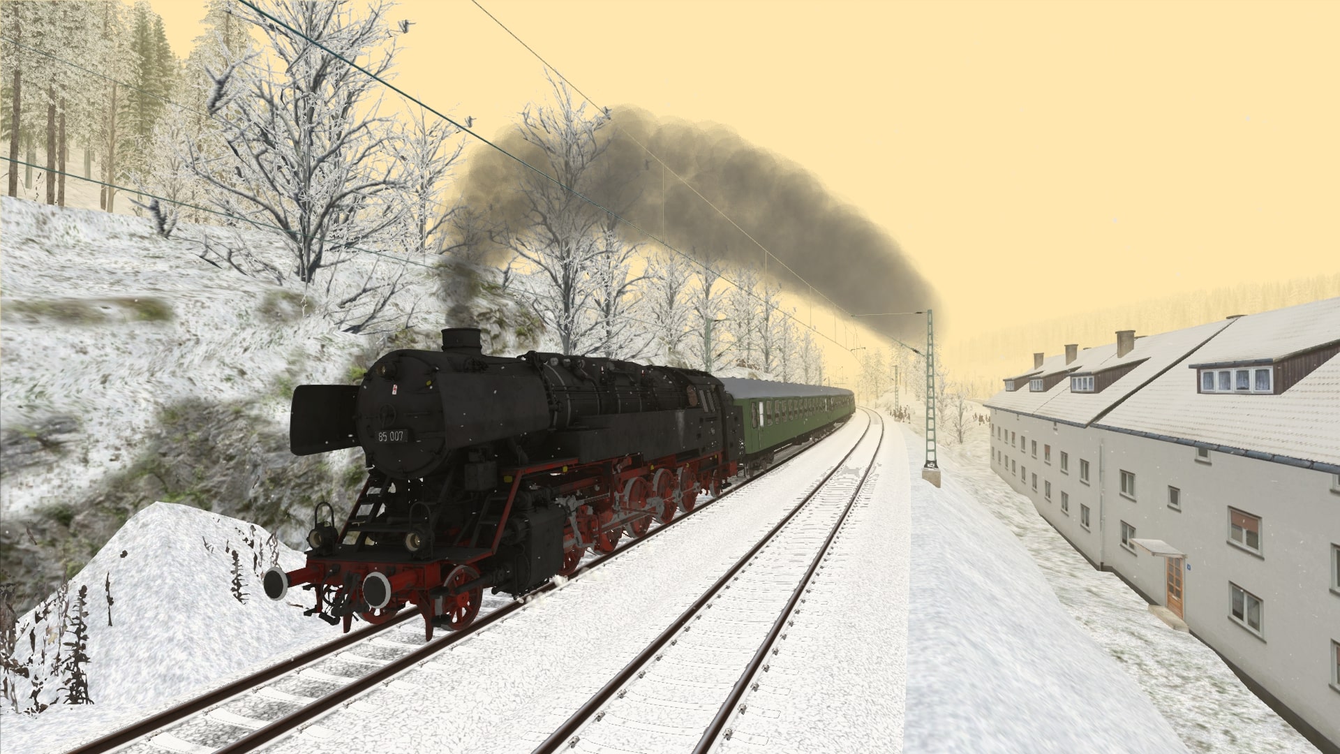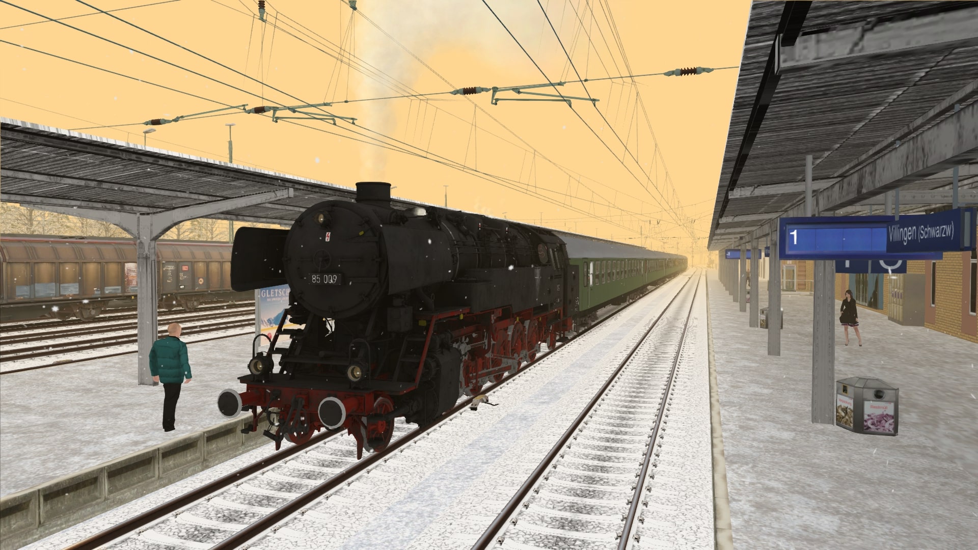 Du fährst in dieser Aufgabe am verschneiten Nikolaustag im Jahre 2020 von Rottweil nach Hausach mit der letzten erhaltenen Lok der Baureihe 85. Du übernimmst die Lok kurz vor Villingen und bringst den Zug dann über den Schwarzwald nach Hausach. Dort endet dann der Zug.