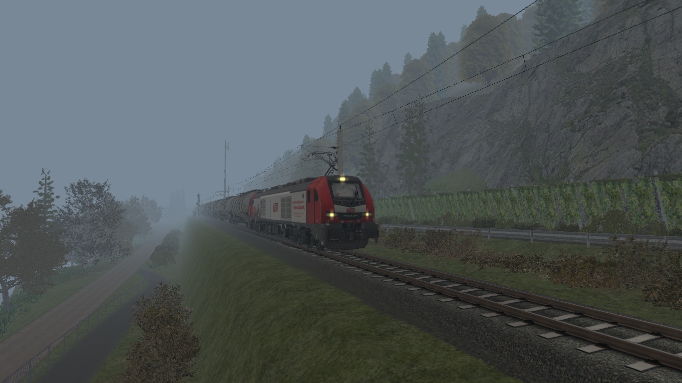 Fahre an einem nebeligen Herbstmorgen einen mit Super Benzin beladenen Kessel Ganzzug von der Bayernoil Raffinerie nach Regensburg zur Abstellung durchs schöne Donautal.