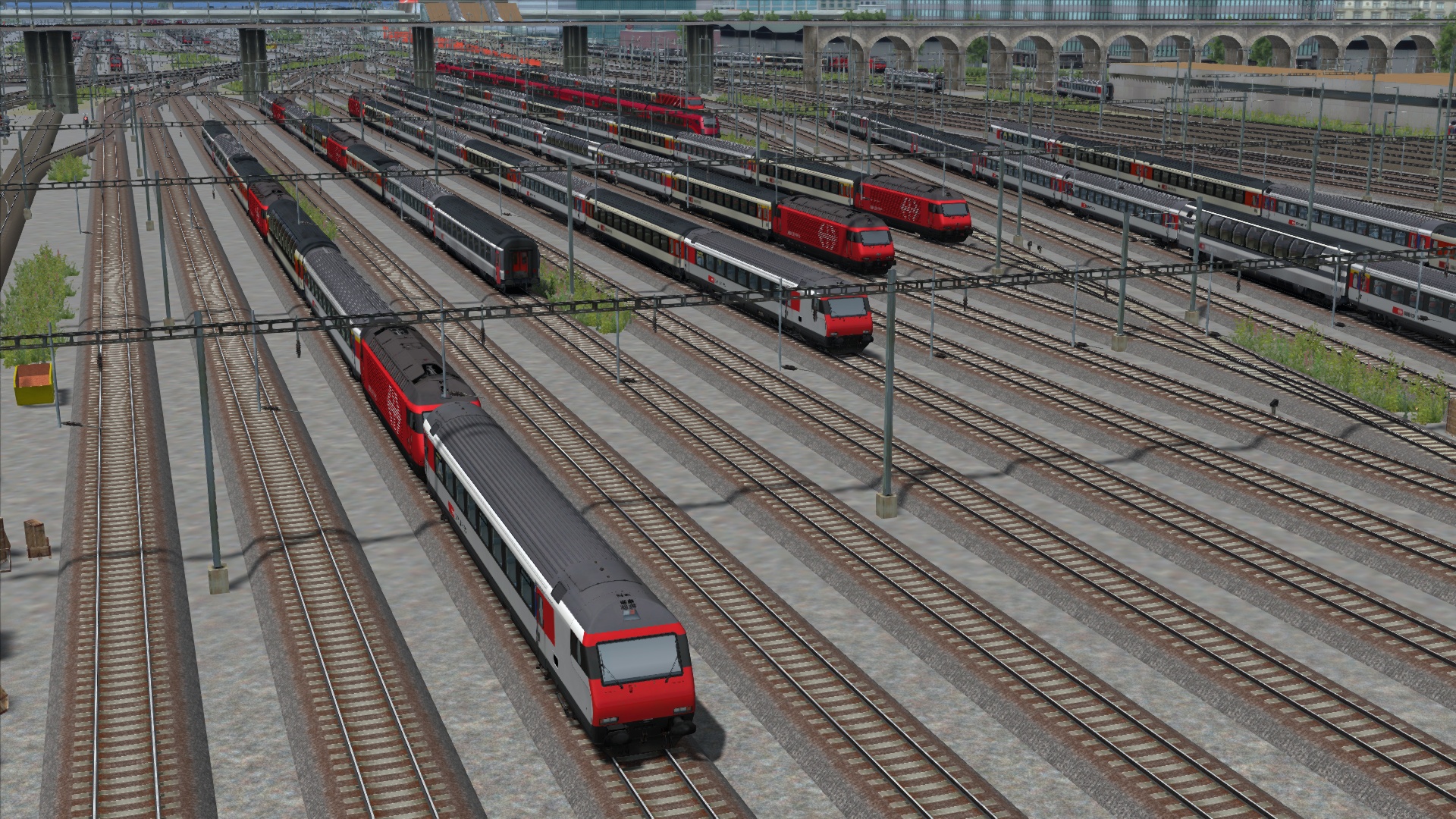 Lang ist die Strecke erschienen, doch wirklich spassig war sie nie… keine grosse Auswahl an Fahrwegen, Bugs im Zürcher Hauptbahnhof und vieles mehr. Dieses Szenario Upgrade ergänzt im Schnellen Spiel Modus zahlreiche Möglichkeiten zu fahren. Mit viel Mühe und Aufwand habe ich aus über zehn Szenarien ein einziges erschaffen, womit man auf vielen abgestellten KI Züge begegnet und auch sehr, sehr viel neue Linien fahren kann. Im Zürcher Hauptbahnhof kann man nun die S12 und S3 (heute S11) vom Unterirdischen Bahnhofsteil fahren, neue Interregio, Intercity und Regio Express Linien ergänzen die Streckenzweige genauso grossartig. Wenn es zügig à la Eilzug sein soll, dann bietet sich der IC5 bestens an. Nimmt man es hingegen gemütlicher an, bieten sich 8 verschiedene S-Bahn Linien an oder die zwei RE Linien (Zürich – Lenzburg – Aarau / Wettingen – Brugg – Wildegg – Aarau – Olten). Insgesamt gibt es 13 verschiedene Linien zum Fahren. Einen Linienplan Auszug befindet sich unten beigefügt oder im Spiel unter der Routenbeschreibung.