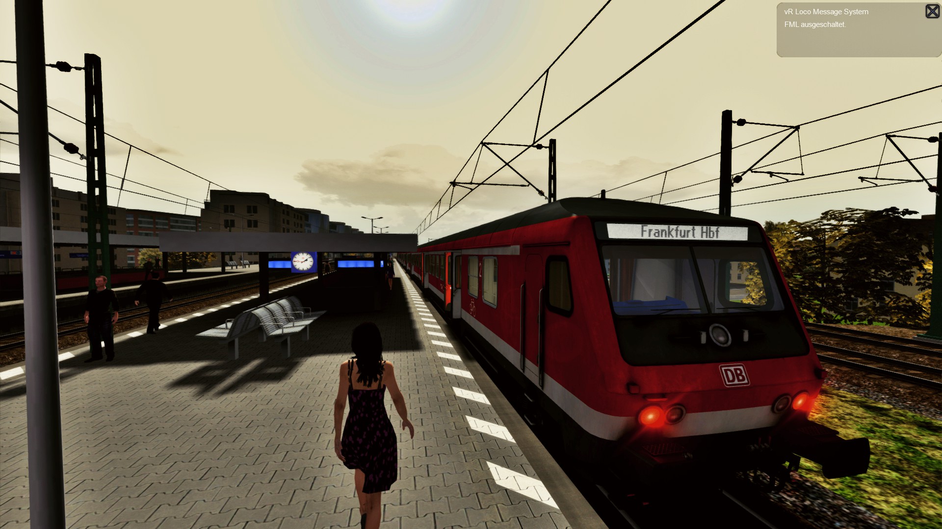 befindest dich vor der Einfahrt in den, Bahnhof Frankfurt Stadion und bringst deinen Zug nach