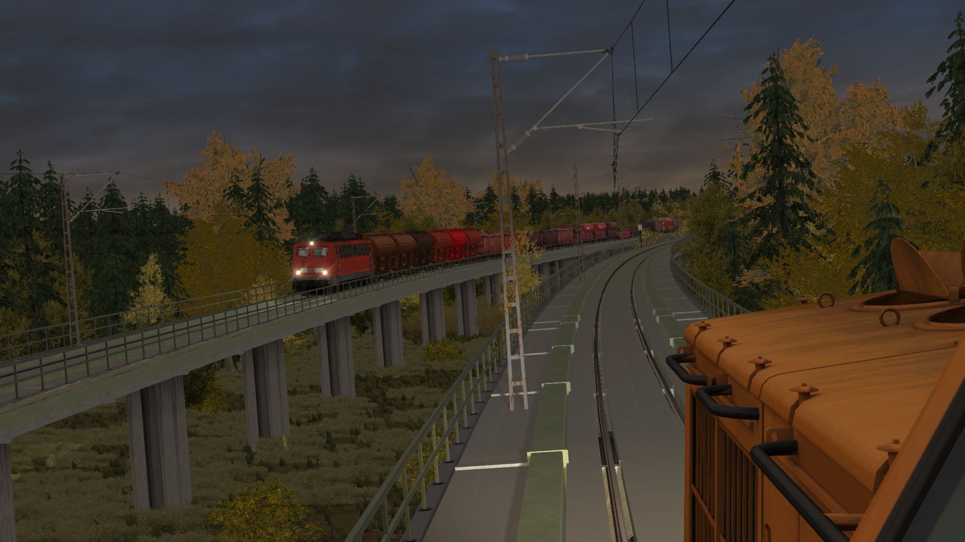Danach geht es für dich auf der eingleisigen Hauptstrecke hinter der RB32 2377 Richtung