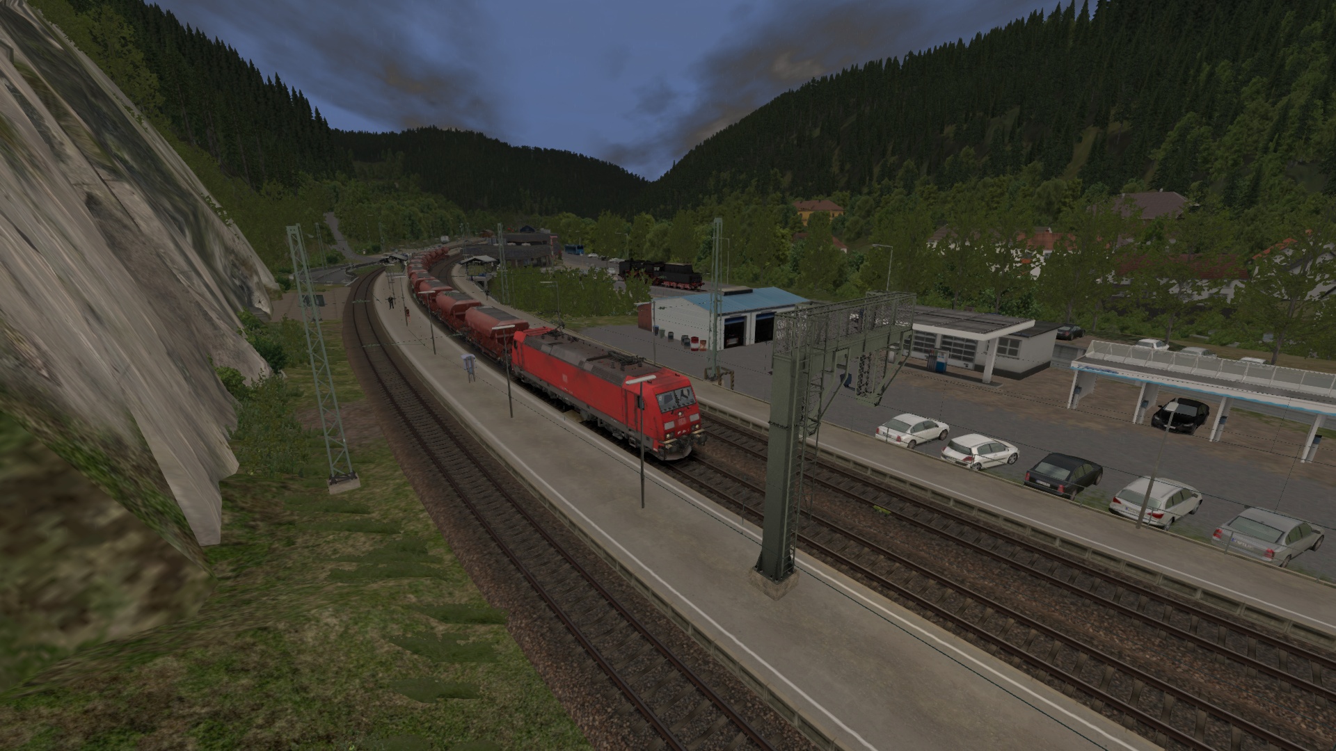- Während des Szenariobaus entdeckte ich eine gleiche Szenarioidee von Lukas_ts18 aus 09/2019. Die Alternativaufgabe kann hier heruntergeladen werden. Wesentliche Unterschiede zum bereits vorhandenen Szenario: unterschiedliches Rollmaterial/Wetter/KI-Verkehr