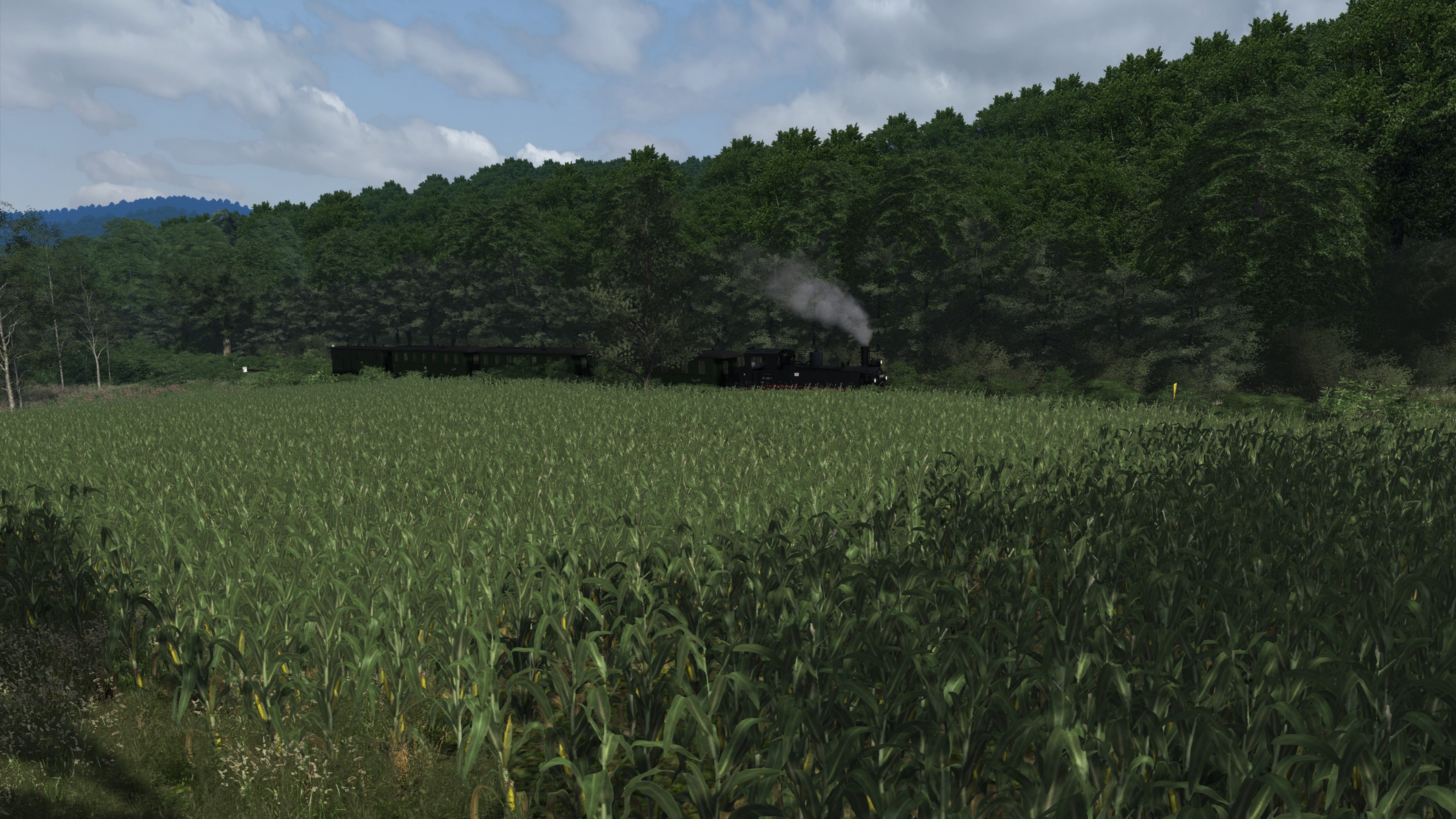 Die Vegetation auf der (Wald-) Schmalspurbahn habe ich fiktiv gestaltet. Auf der alten Strecke, wo Felder mit einer gewissen Bodentextur angedeutet wurde habe ich versucht diese mit identischen Getreide, Kohl oder ähnlichen auszugestalten.