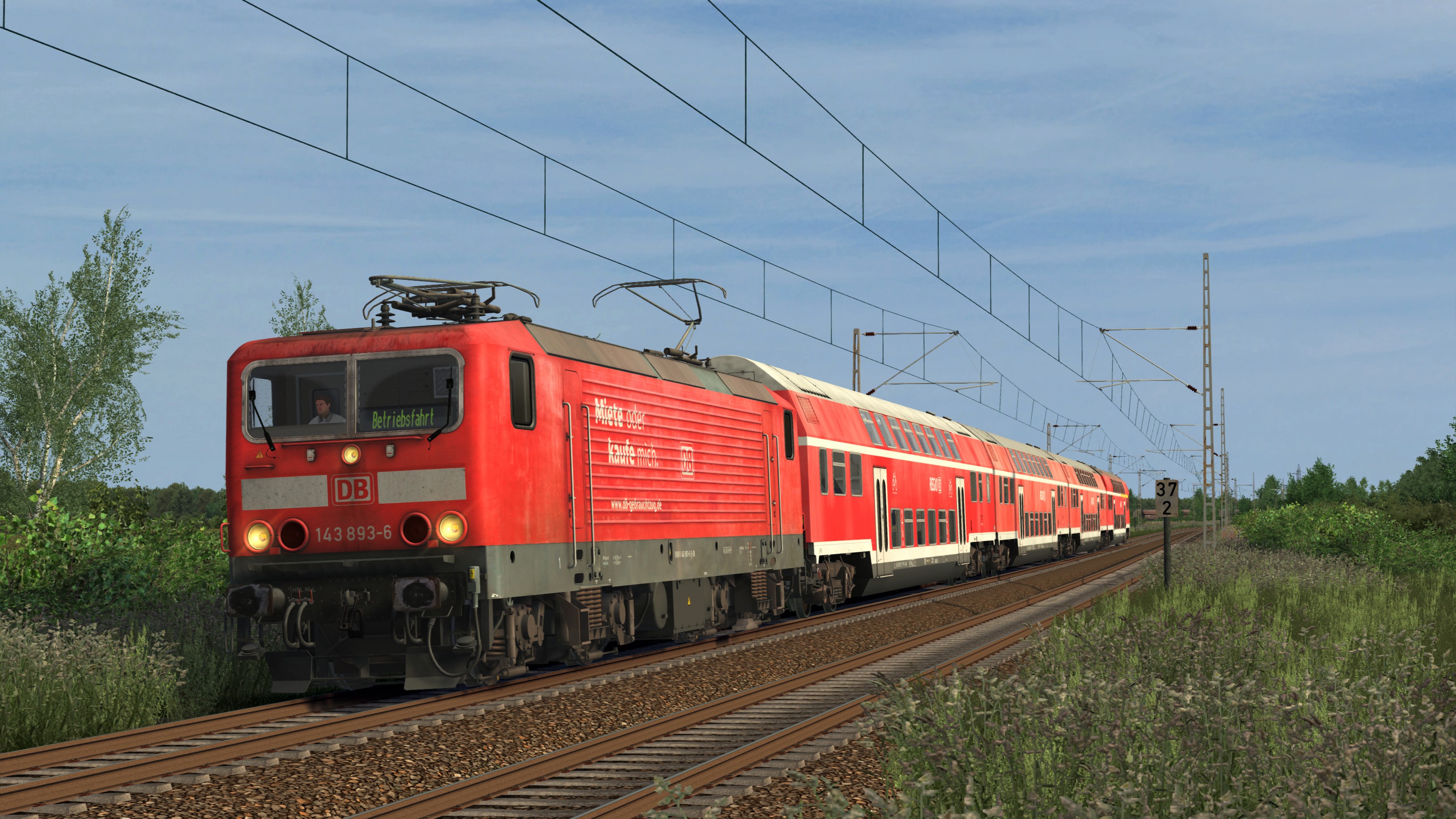 du fährst heute eine Dosto-Garnitur mit einer Lok der Baureihe 143 von Rannstadt Hbf nach Nachteburg Hbf.