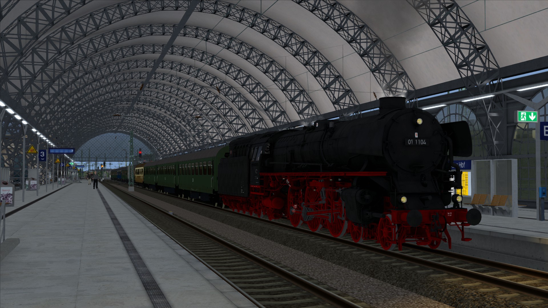 Am 13.04.2024 veranstaltete Nostalgiezugreisen gemeinsam mit den Eisenbahnfreunden aus Staßfurt eine Dampfsonderfahrt mit gleich 2 großen Dampfloks von Goslar sowie Staßfurt nach Dresden zum 16. Dampfloktreffen. Auf den Rückweg zog die 01 1104 den Sonderzug alleine zurück bis Magdeburg wo der Zug dann geteilt wurde und wieder nach Goslar/Staßfurt fuhr. Du fährst in dieser Aufgabe den Abschnitt von Dresden Hbf bis Leipzig-Engelsdorf. Aufgrund von Bauarbeiten in Coswig musst du ab Radebeul über der Schnellfahrstrecke nach Riesa fahren.