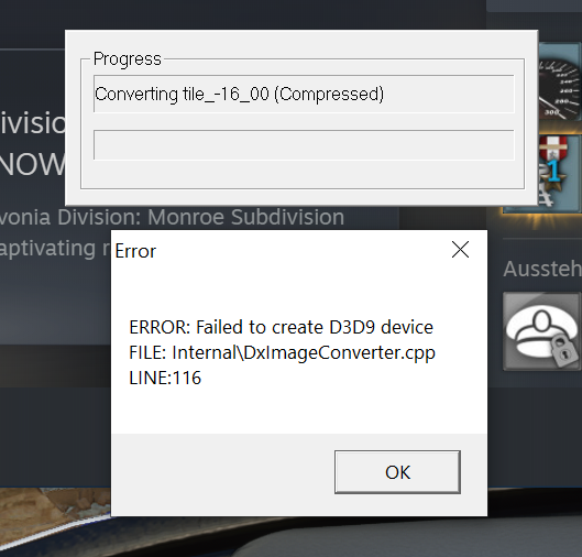Ich muss mich dann durch diese sich wiederholenden Fehlermitteilungen durchklicken und er arbeitet dazwischen weiter. Am Schluss wird dann auch eine DistantPatches.bin erstellt und ein Textures Ordner. Ich sehe auch Distant Terrain, aber leider auch Berge (Berner Alpen), die nicht dargestellt werden und aufpoppen. Durch die vielen Fehlermeldungen bleibt auch ein schales Gefühl zurück.