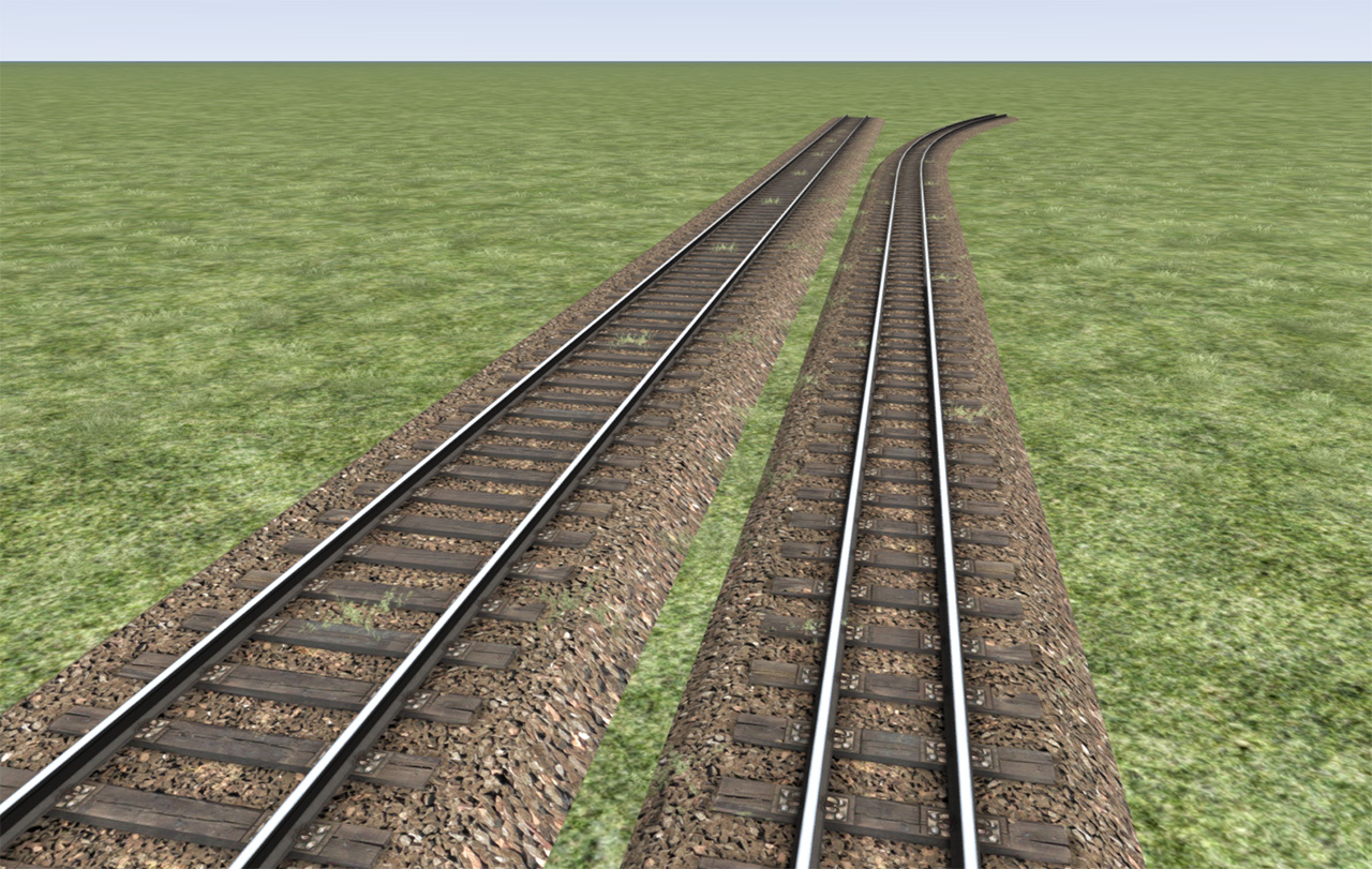 • Aber noch nicht das absolute Maximum überhaupt. Ich könnte mir gut vorstellen die Sache mit unterlegten Lofts zu gestalten. Ist natürlich wahnsinnig aufwändig, aber der Gestaltung sind dann wenige Grenzen gesetzt. Die Bahndämme die DTG so verwendet sind ein ähnliches Prinzip um diesen Bodentexturen aus dem Weg zu gehen. Also "einfach" ein paar Lofts mit der selben Texturauflösung wie die Gleise erstellen, verschiedenen Breiten und Formen, engelehnt an reale Gleisbettunterbauten und schon gehts los. Wenn man OL mit Lofts hinfummeln kann, dann auch Gleisbetten.