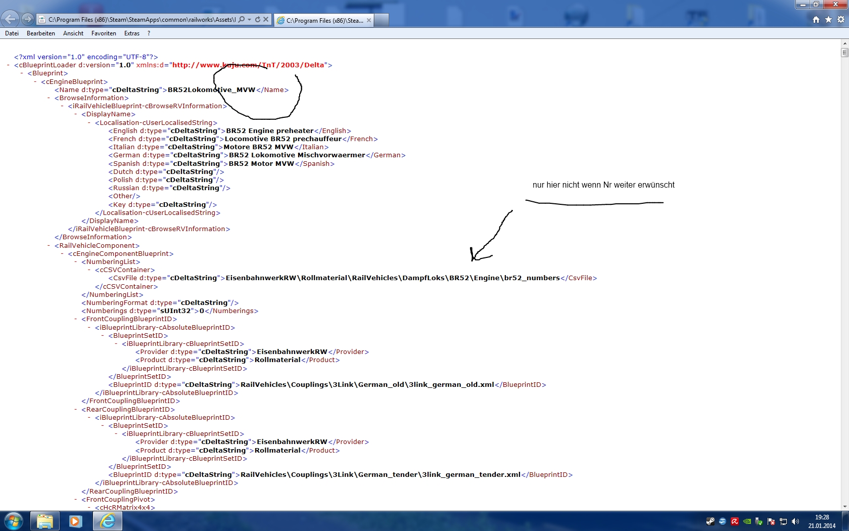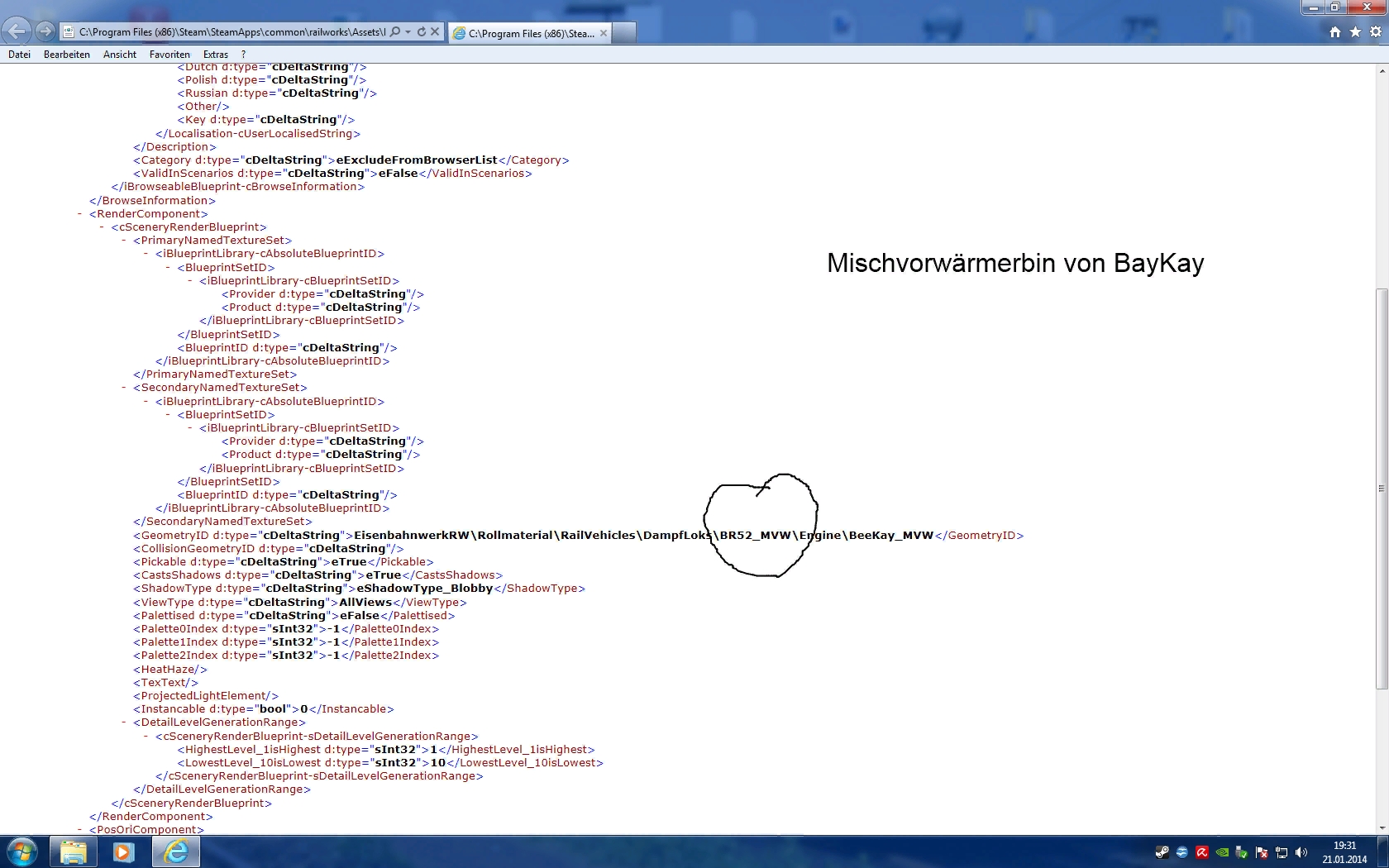 Dann werden Die Texturen und neuen Dateien eingefugt -Bin durch serzen erzeugt und eingefügt ( kann vorher auch umbenannt werden -muss jedoch nicht/ für die Anzeige im Spiel ist der Name in der Bin zuständig( Hier unter German BR52 Mischvorwärmer ) nicht der Name der Bin )