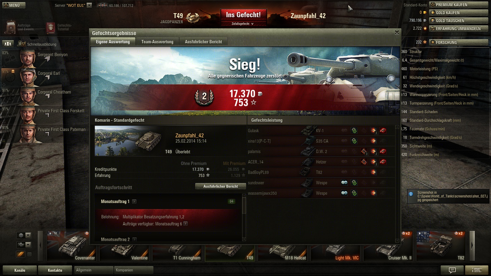 Mein erster Prem. war der T26E4 und den hab ich mir geholt, als ich mir meinen E-75 in die Garage gestellt habe.