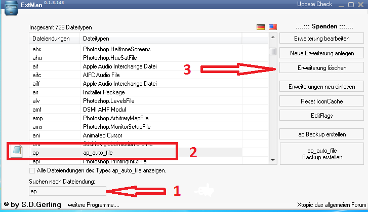 Prog starten und so vorgehen wie auf Bild 2 zu sehen. Suchen nach Dateiendung da gibst du ap an und schon wird dir diese auch angezeigt.