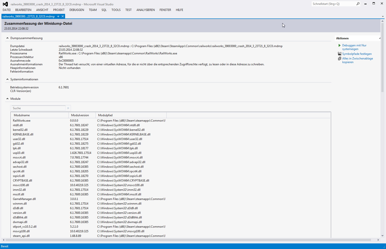 Dann gibt es jedoch Szenarien, die bekomme ich nur dann zum Laufen, wenn die Grafik komplett alles minimiert ist. Probiere ich es trotzdem mit normalen, oder höheren Einstellungen, so steigt es meist bei den so genannten Bildrucklern aus, mit der Meldung: "Failed to save dump file to C:\Temp Dump\TS2014-V39.3a dmp (error 0)".