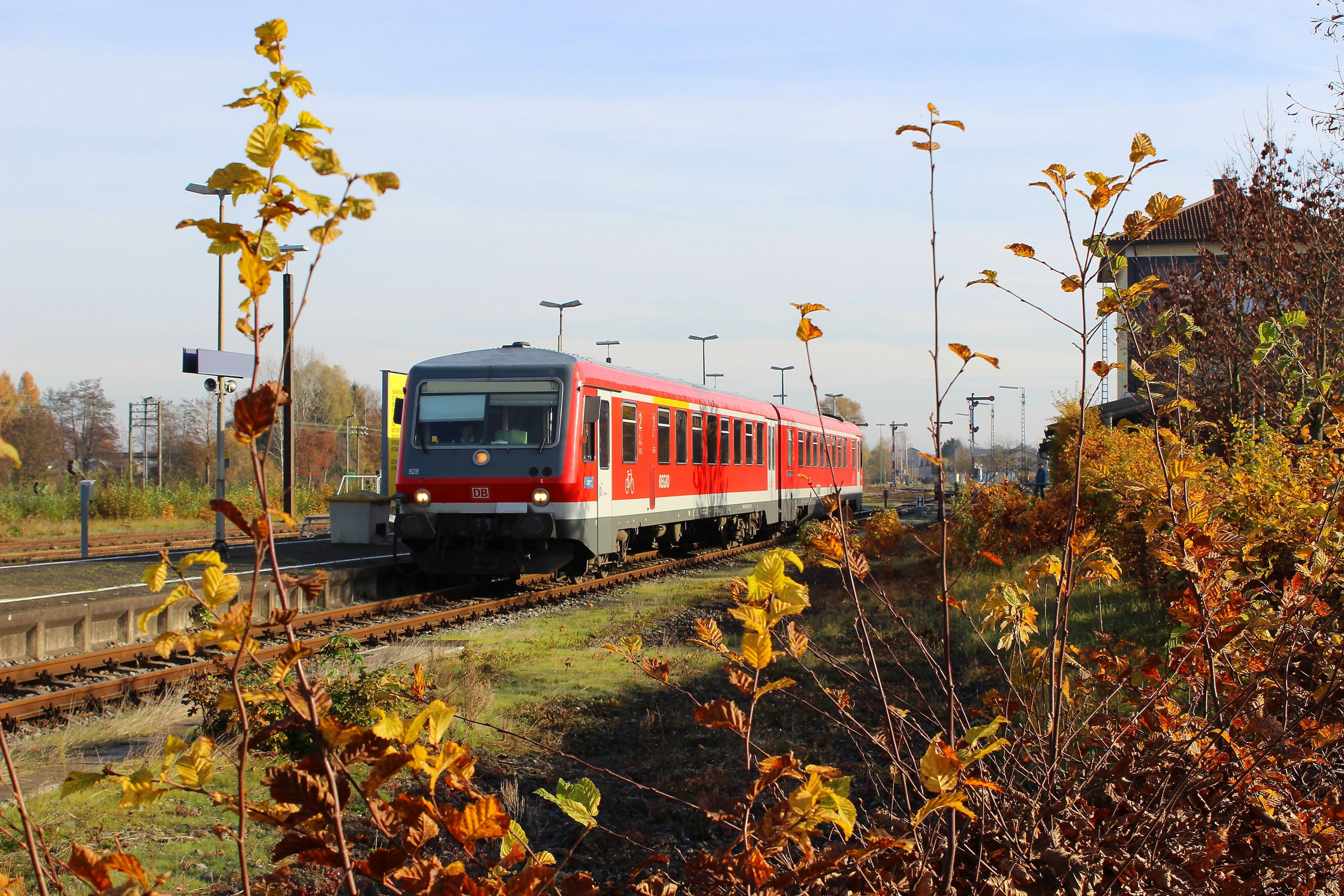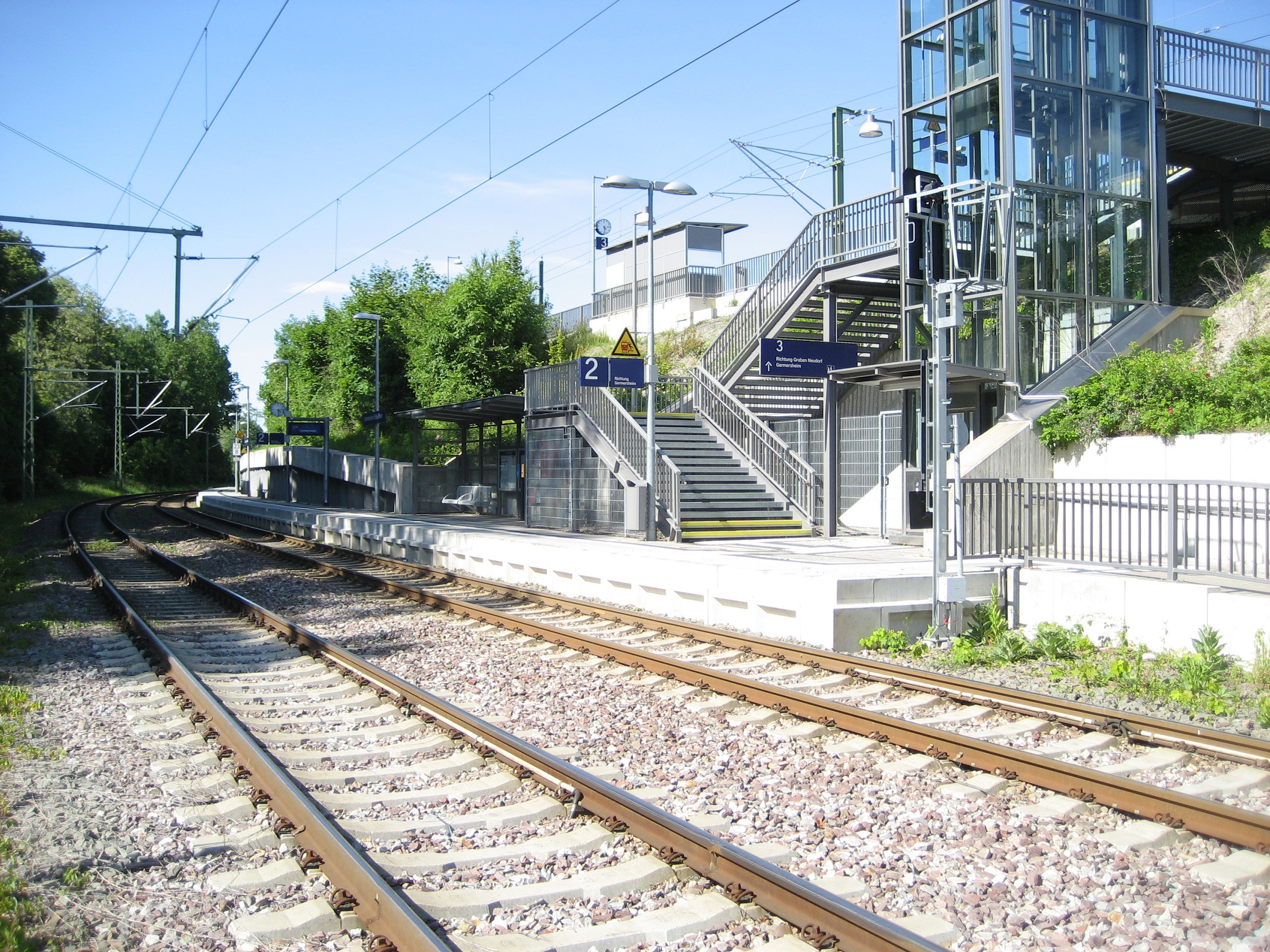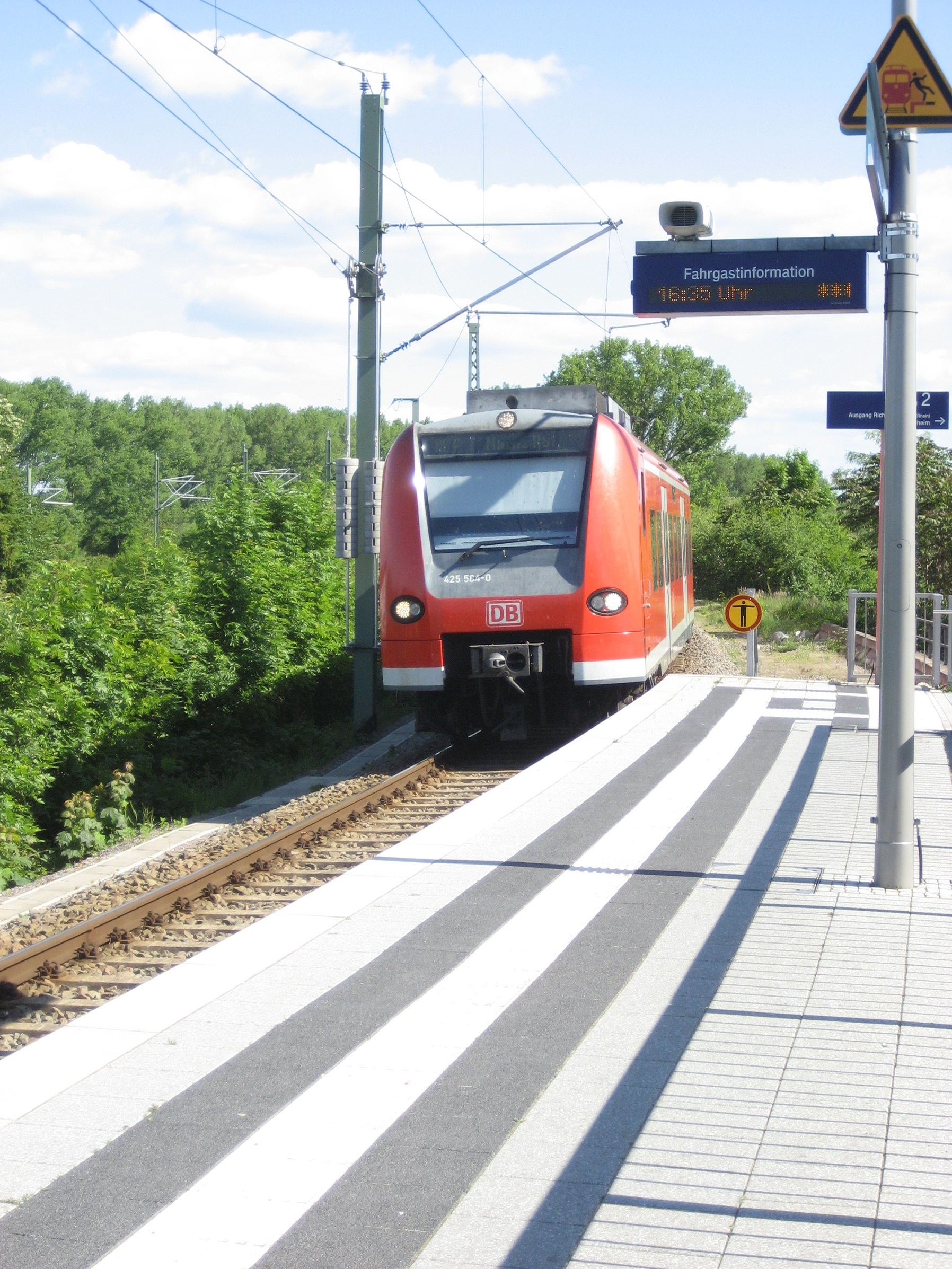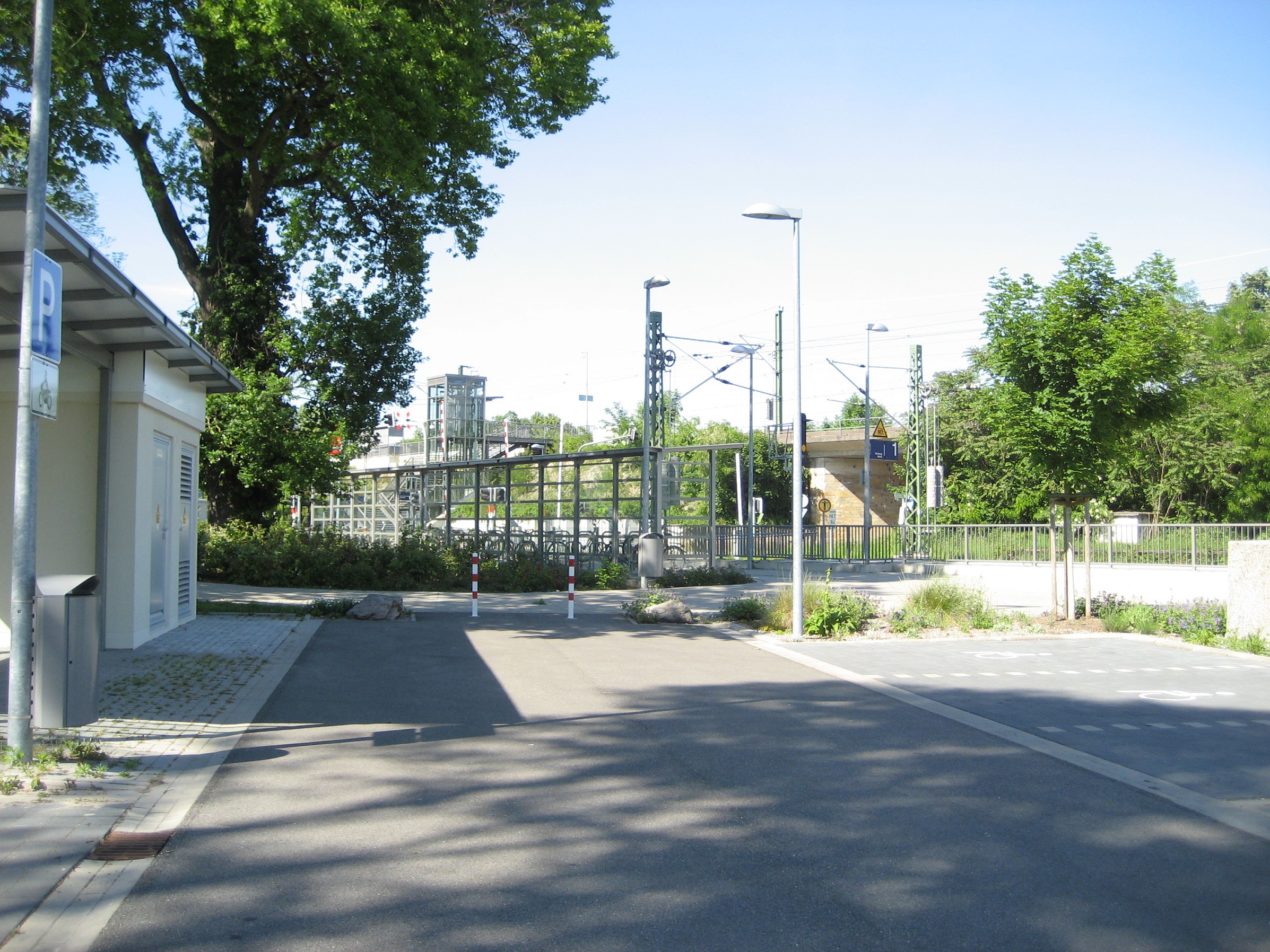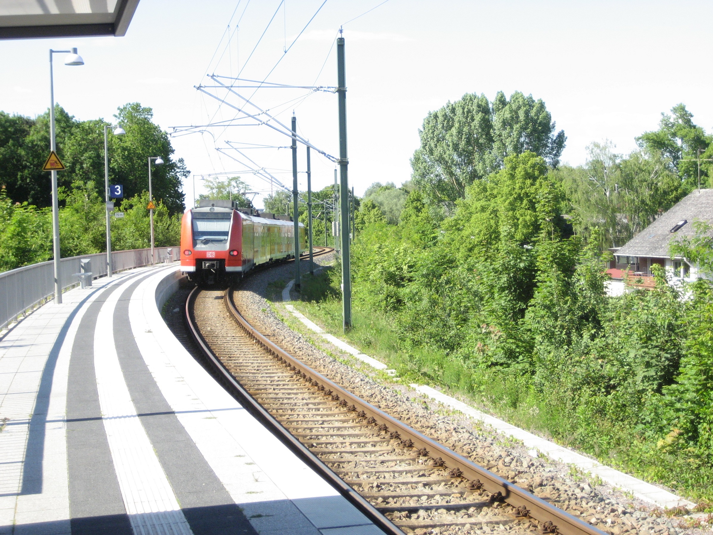 - Heute ist hier ein Haltepunkt mit Bahnsteigen an allen drei Gleisen.