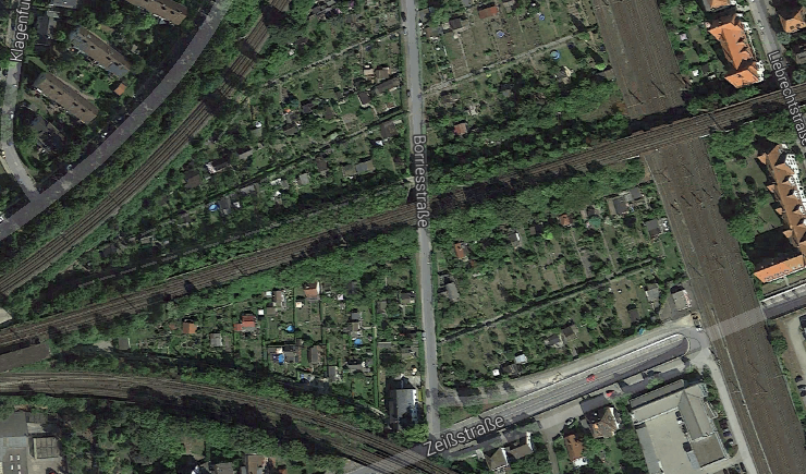 Es geht um eine Eisenbahnüberführung südlich von Hannover, aber noch auf dem Stadtgebiet. Das Streckendiagramm ist da eigentlich eindeutig (siehe Bild). Die erste Überführung ist die der Güterumgehungsbahn über die NBS und die Borriesstr.. Und das ist die Lösung! [Und, schlagt Ihr jetzt die Hände vor's Gesicht?]
