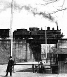 - Die Strecke die auf der Brücke ist auf ein Gleis zurück gebaut. Es fehlt das Gleis, auf dem die Dampflok fährt.