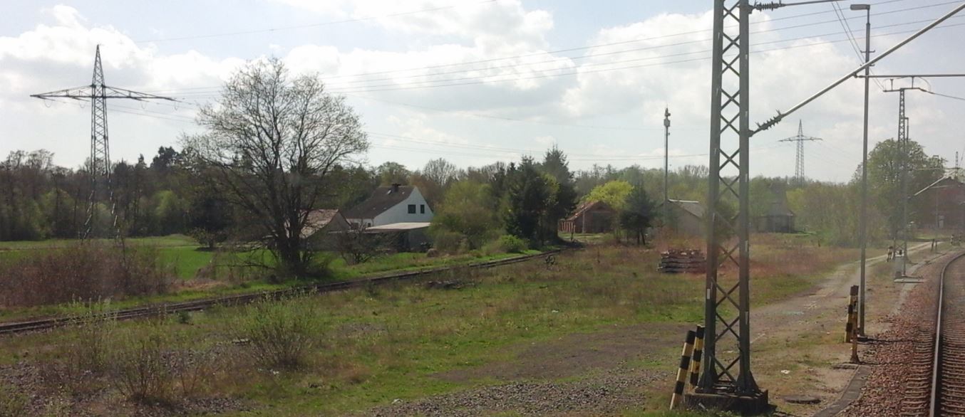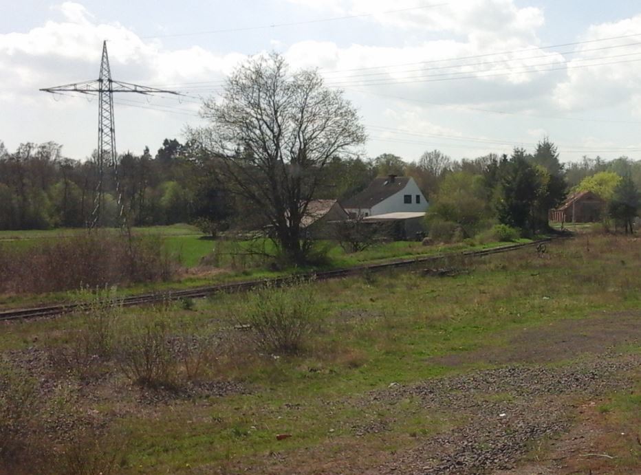Das zu sehende Gleisstück, welches da romantisch in der Landschaft verschwindet, endet an der zu sehenden Scheune bereits, denn es dient als Auszieh- und Rangiergleis des vorgelagerten ehemaligen Kleinbahn Bahnhofes. Ich fotografiere allerdings vom früheren Staatsbahnhof aus, und ein Umsetzen von einem zum anderen Teil, von welchen es ja in verschiedene Richtungen ging, war nur mit Rangieren möglich. -