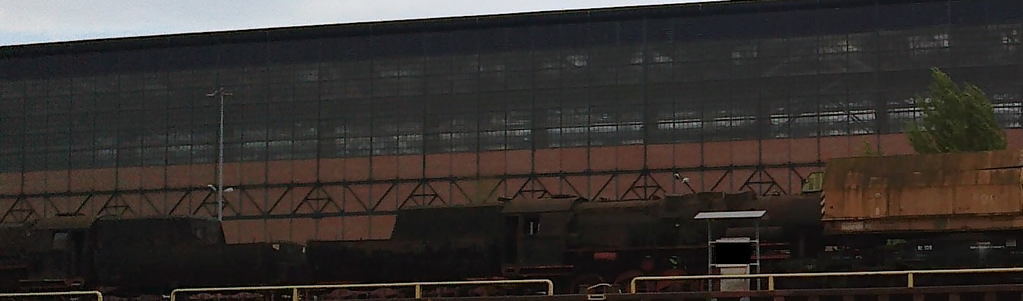 Nun, die Lok schauen sehr nach der Br 52 aus, die wohl nicht in Betrieb sind. Vorne ist ein Teil einer Spundwand zu sehen.. Ist das Bild in einem Hafen entstanden?? Ich tippe mal auf Polen.