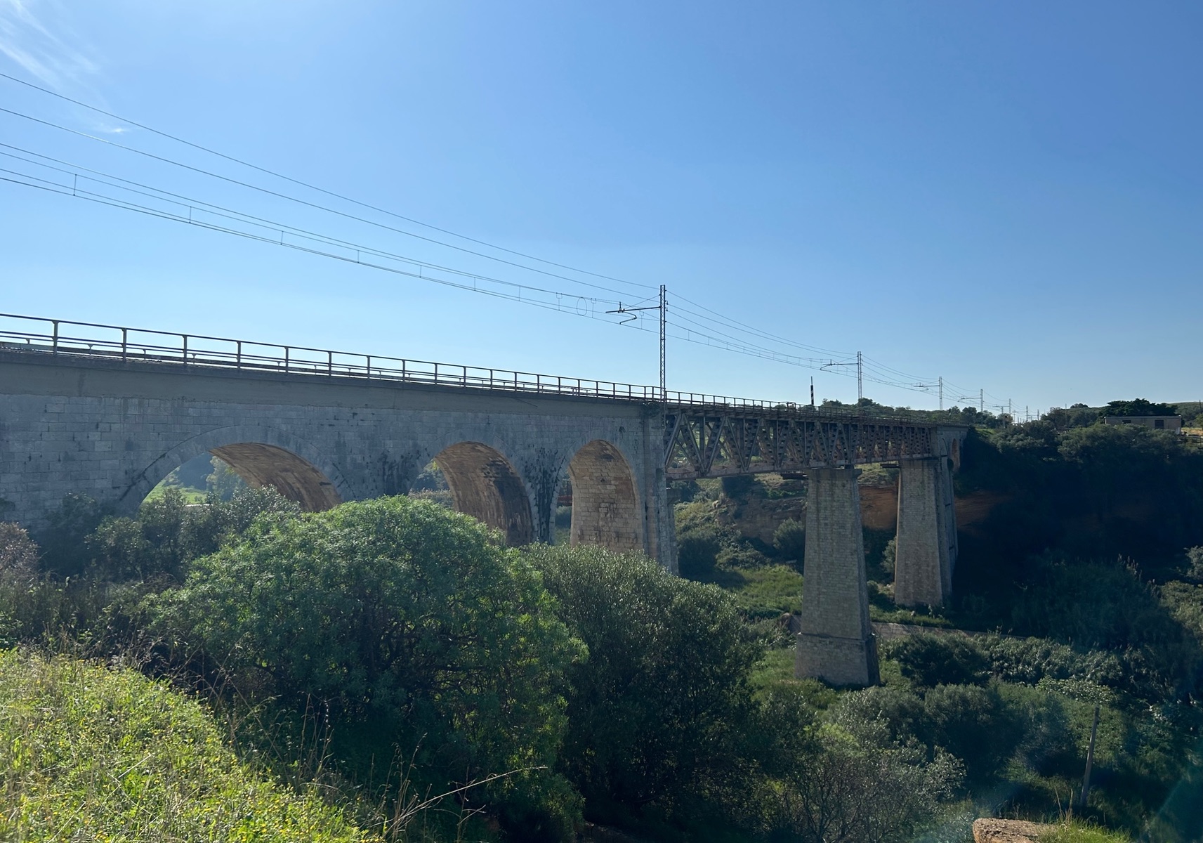 Stehst du in der Nähe der Brücke Ponte storico della ferrovia valle dei templi (Name laut Google Maps)
