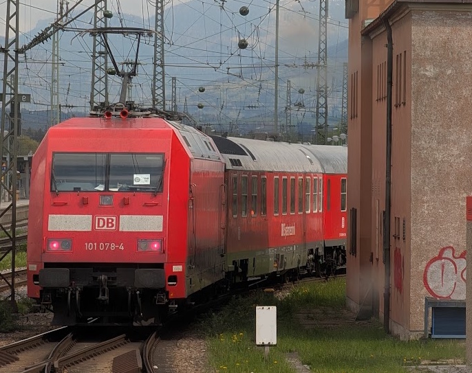 Ich meine, den Bahnhof hatten wir schon öfters, und wenn ich richtig liege, würden wir, drehten wir uns nach links, ein weiteres, anderes Verkehrsmittel sehen können.