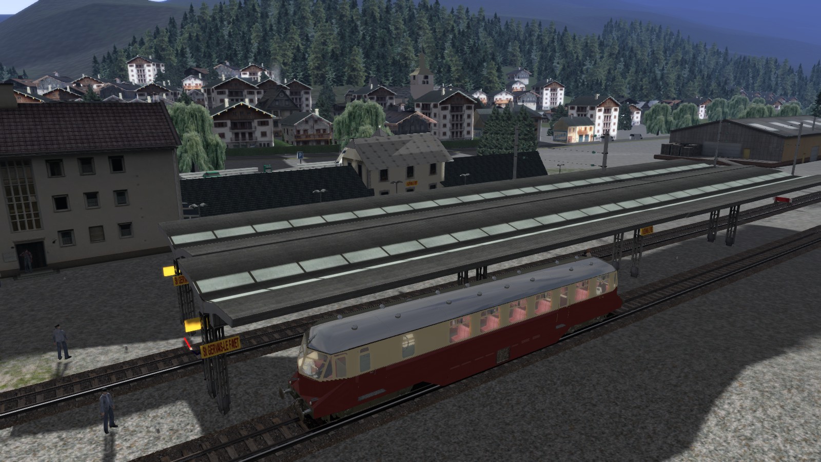 Aber, der Triebwagen (Erstaunlich kurze Downloadzeit auf UKTrainSim) entgleist an der ersten Weiche, (Radius zu eng?) dann ist das Ganze als Einrichtungsgleis (Rote Pfeile) gebaut, man kommt evtl rauf, aber nie runter!. Nur evtl. im Freeroam, kein Fahrplanszenario möglich.