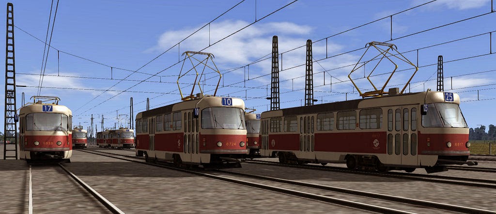 Da ich Führerstände nicht so gerne baue und das dementsprechend immer sehr lange dauert, werde ich demnächst ein komplett fahrfähiges Modell als "open alpha" veröffentlichen, dazu fehlen nur noch ein paar kleine Updates und Korrekturen. Die Wagen haben ein Auto-Nummernsystem für Prag, mit Prager Wagen-, Liniennummern und Zielschildern. Irgendwann könnten dann auch noch weitere Varianten kommen (T3SUCS usw.)