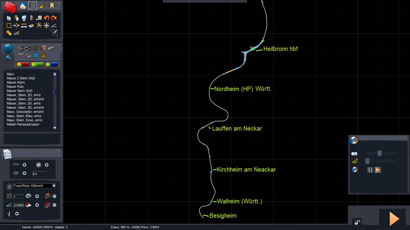So: Es gibt Neuigkeiten: Ich habe nun auf der Strecke zwischen Heilbronn und Suttgart Hbf, DEM - Gelände verlegt. (Inkl. "Schlaganfall", wegen des Abstellbahnhofs in Kornwestheim... Von wegen Maschen ist groß, Kornwestheim ist GIGANTISCH.