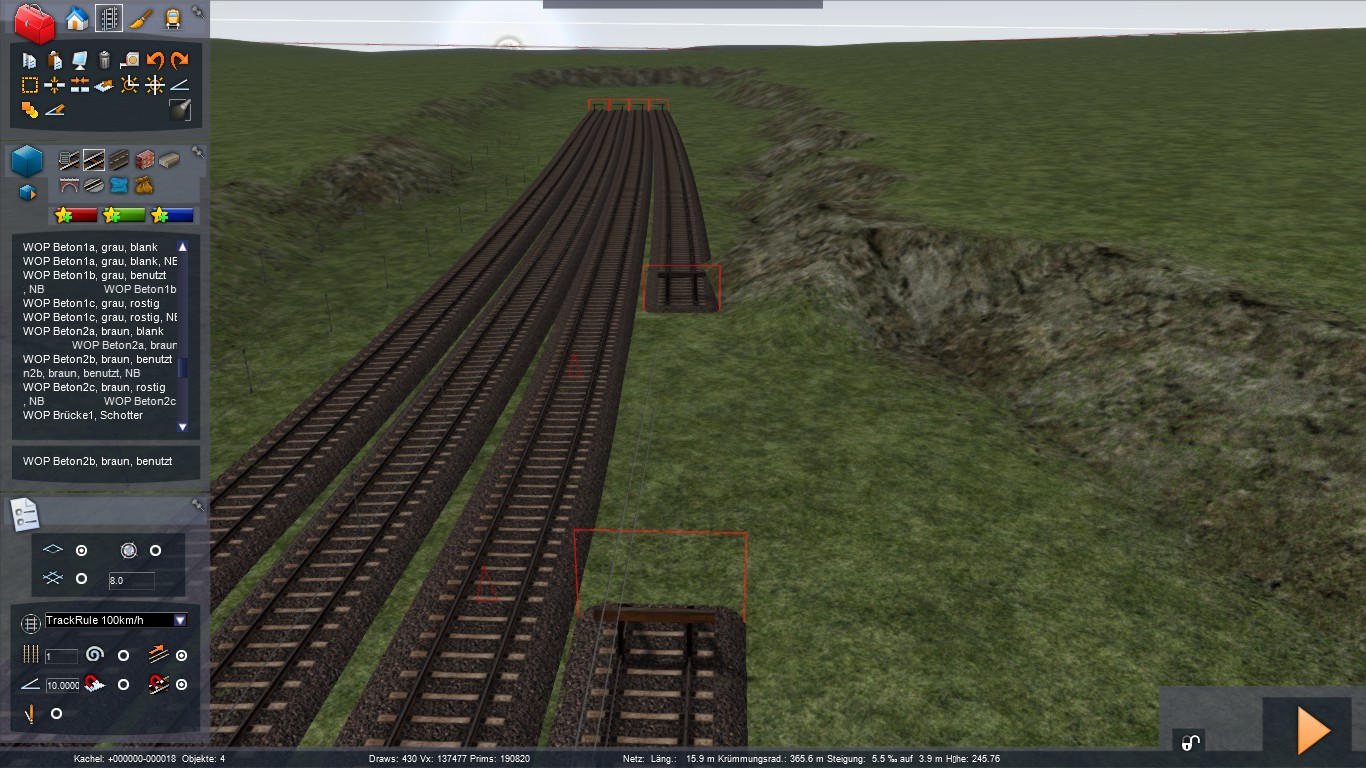 Also ist der Bahnhof ebenfalls Kurvenüberhöht.Hast du denn auch Trackrules für die reduzierte Kurvenüberhöhung im Bahnhof?