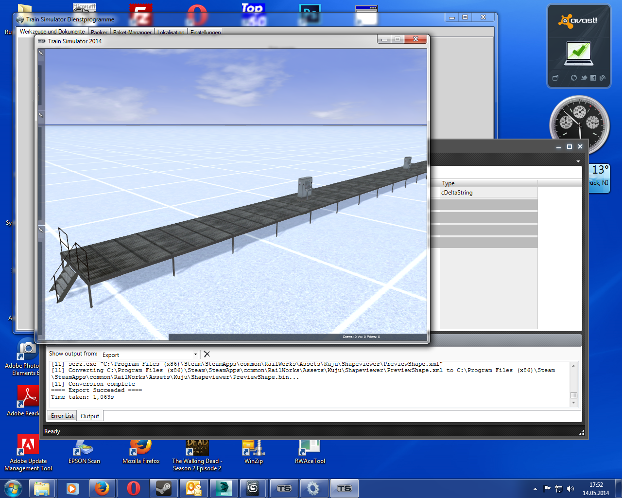 Der Export zur IGS DAtei wird ohne Fehler ausgeführt (Namenskonvention wurde natürlich mit 1_0500_Box1 eingehalten), beide TGA Texturen wurden mit RW Ace Tool exportiert ins Entwicklerverzeichnis (Source\rschally\Nordwestdeutschland\Scenery\Buehne1) darin ist auch der Textures Ordner der die TGA und ACE DAteien enthält. Im BPE per Rechtsklick wurde der Blueprint erstellt (dies klappte auch bei meinen anderen Objekten einwandfrei) habe dann in der Render Kategorie nur noch den Provider und Product nachgetragen (auch wenn´s nicht unbedingt erforderlich scheint). Dann habe ich noch die xml und ace Dateien exportiert. Alle Exportvorgänge vom 3D S Max, wie auch sämtliche Vorgänge im BPE wurden mit Erfolgsmeldungen quittiert.