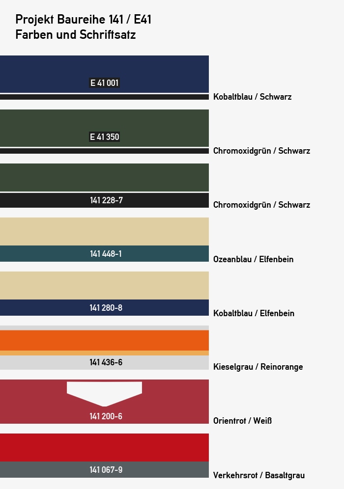 Es soll sie auf jeden Fall geben als: E41 in Blau & Grün mit alten Lüftungsgittern und als BR 141 in S-Bahn, Rhein-Ruhr S-Bahn, Blau-Beige, Orientrot und Verkehrsrot - dann ist für jede Epoche etwas dabei!